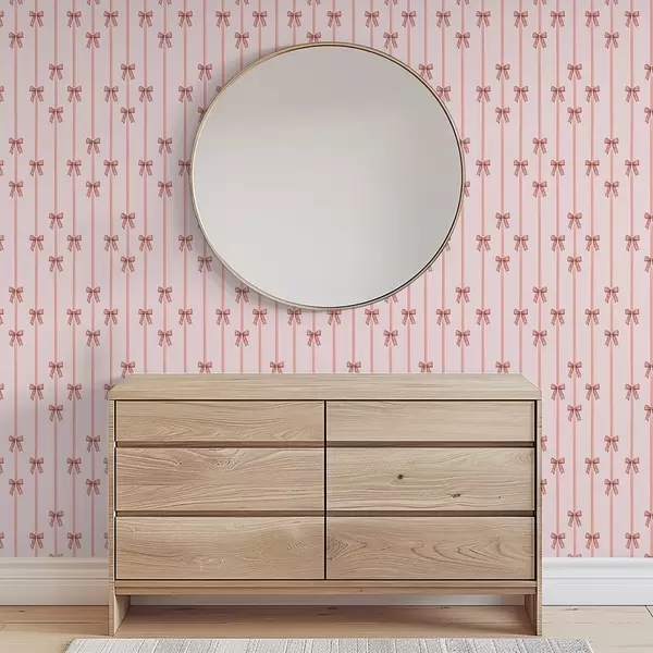 Ταπετσαρία Κάθετες κορδέλες με φιόγκους, φόντο σε ροζ χρώμα πούδρας Nr. a00653v2