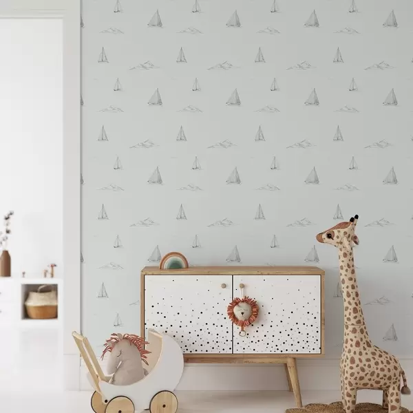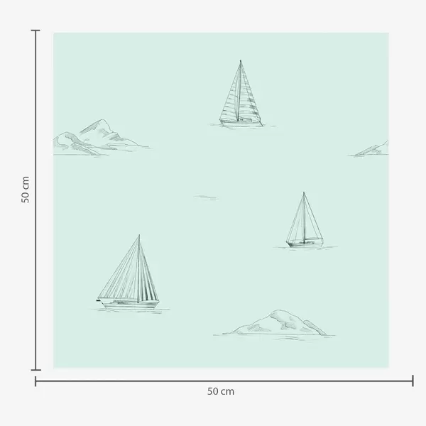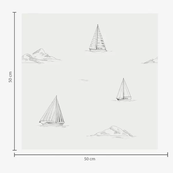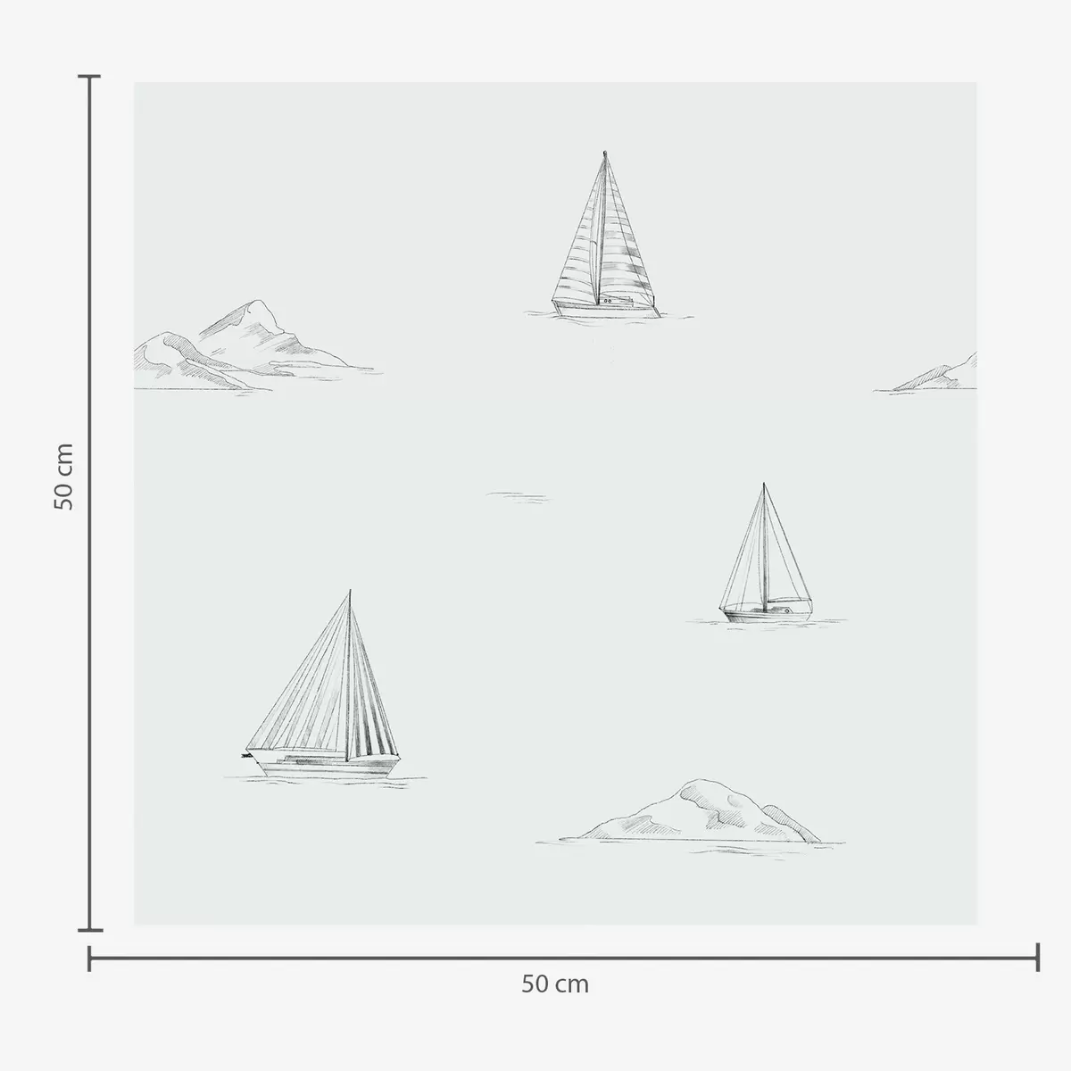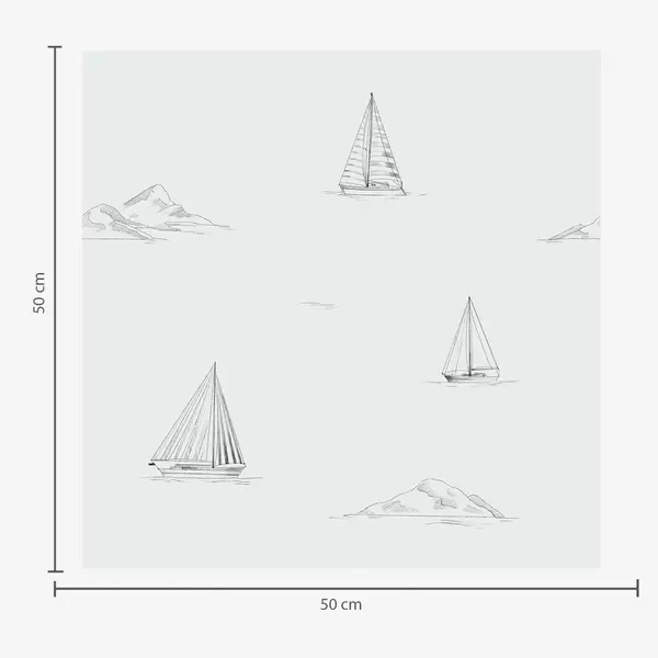 Ταπετσαρία Σκίτσα γιοτ και νησιών, δροσερό μπλε-γκρι φόντο Nr. a00654