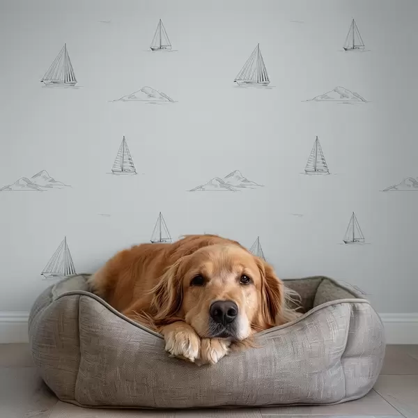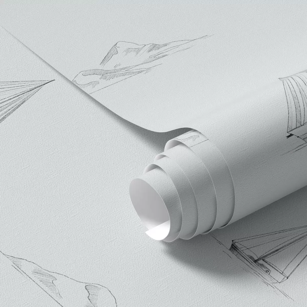 Ταπετσαρία Σκίτσα γιοτ και νησιών, δροσερό μπλε-γκρι φόντο Nr. a00654