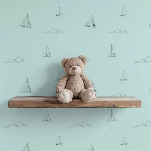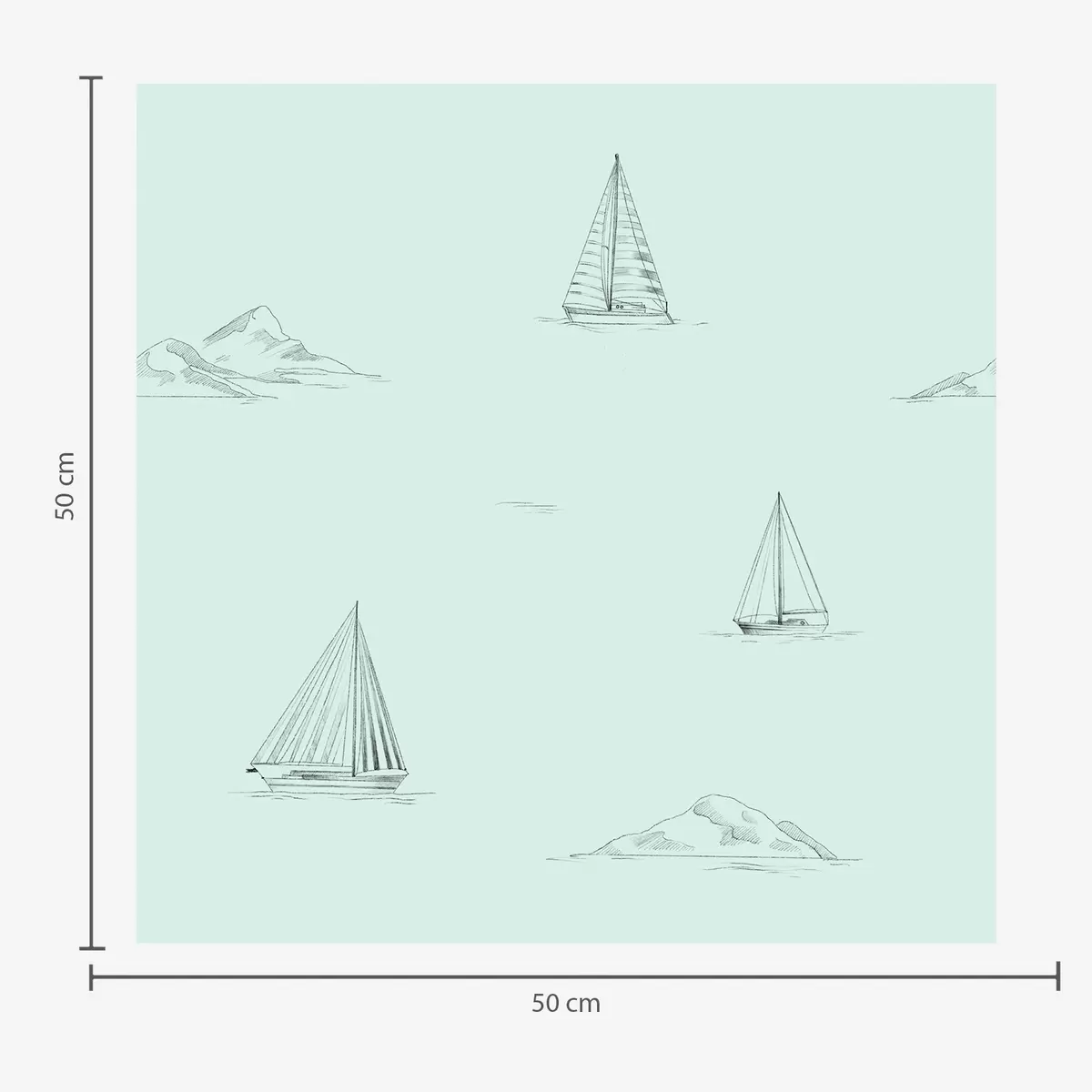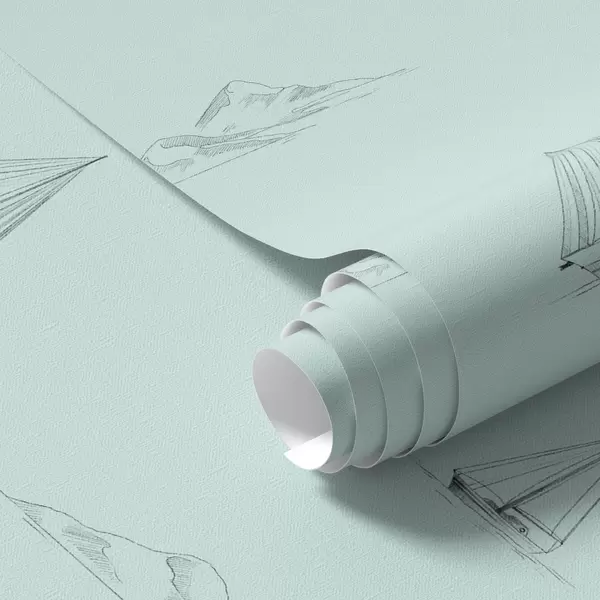 Ταπετσαρία Σκίτσα γιοτ και νησιών, φόντο σε χρώμα μέντας Nr. a00654v4