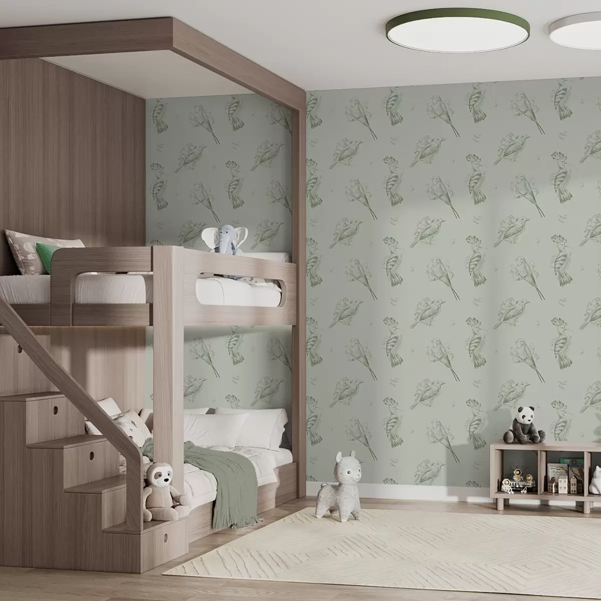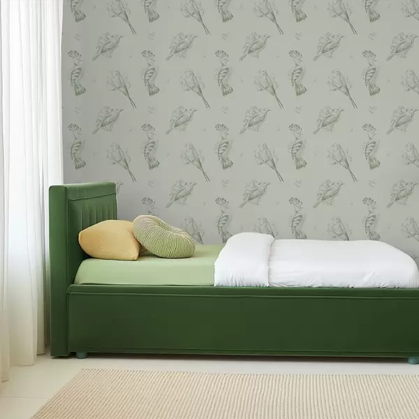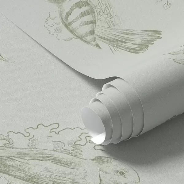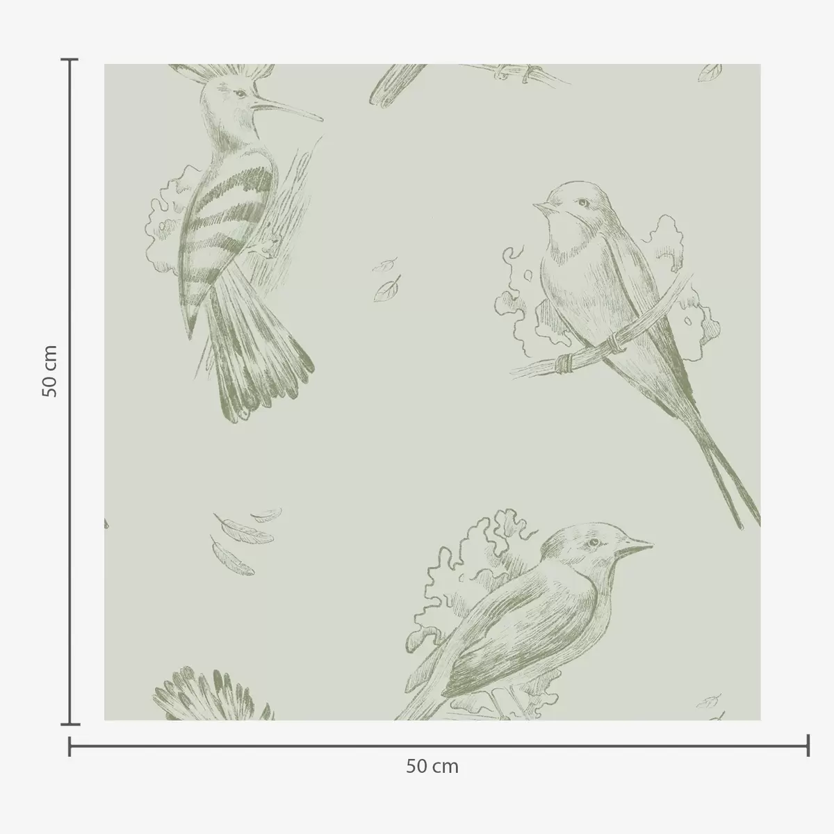 Ταπετσαρία Πουλιά σε φόντο: σκίτσα πουλιών σε γκρι-πράσινο φόντο Nr. a00656v1