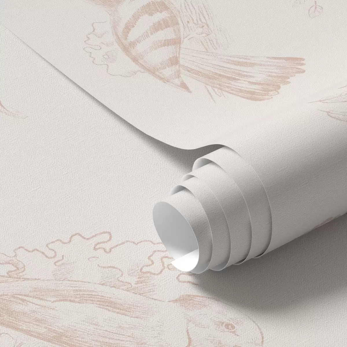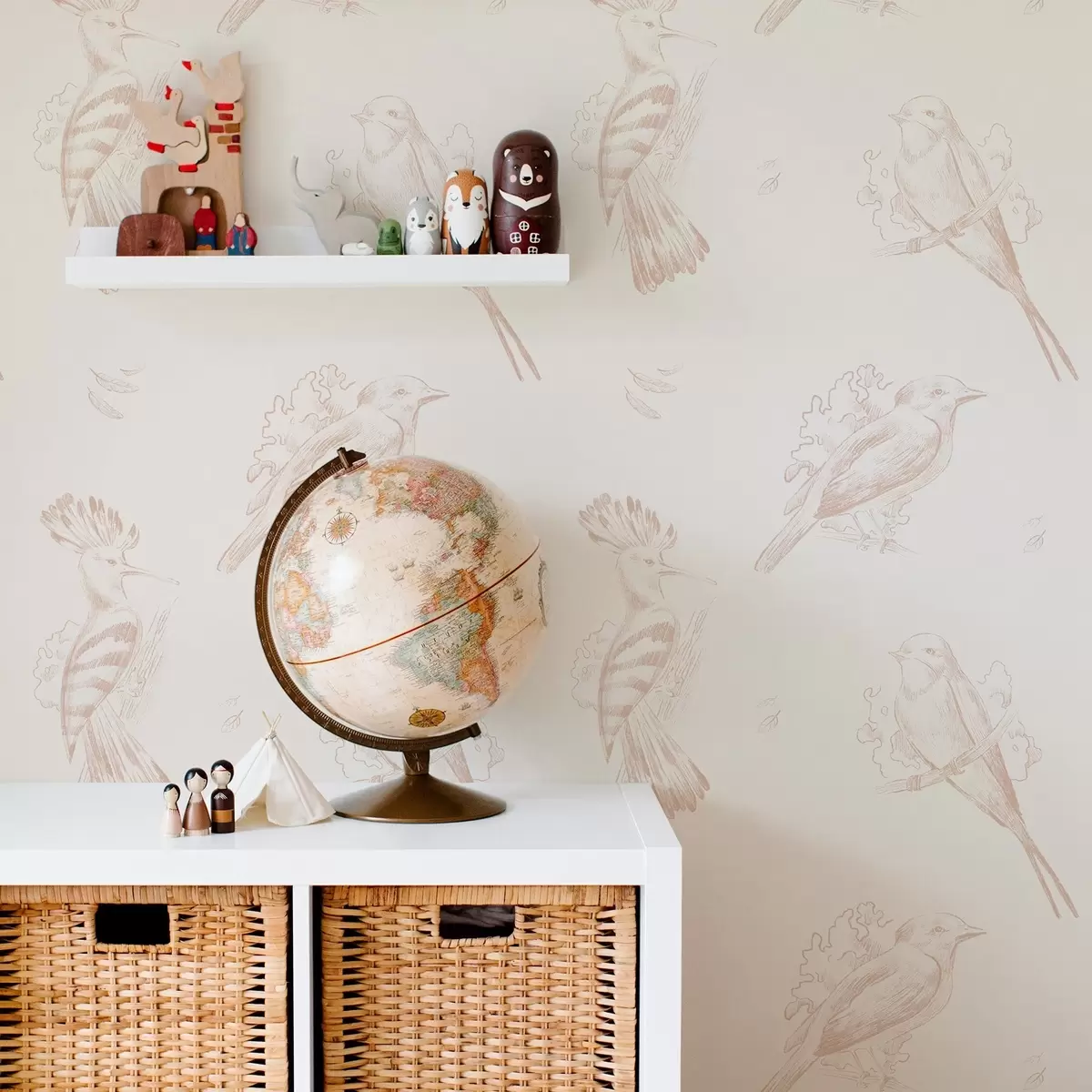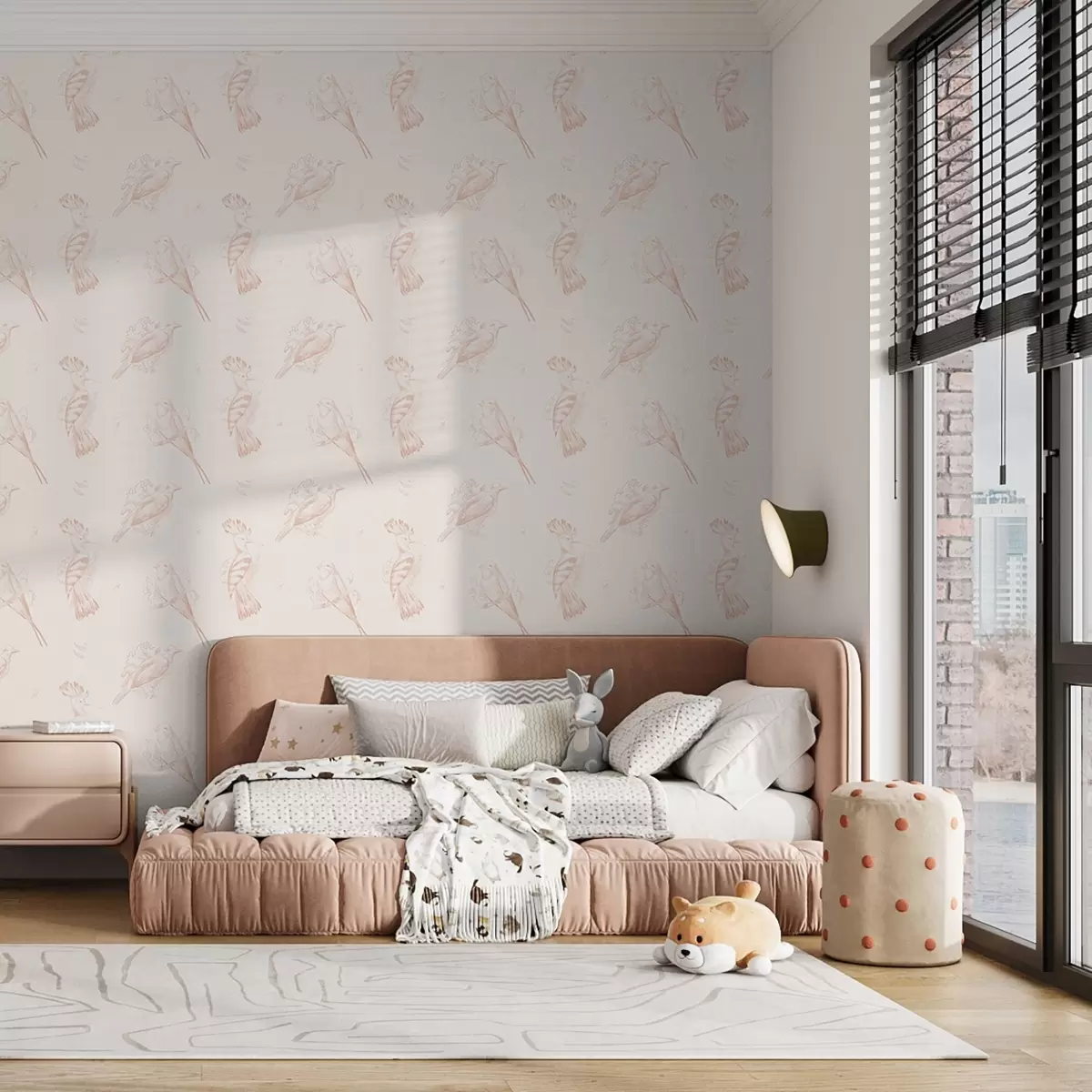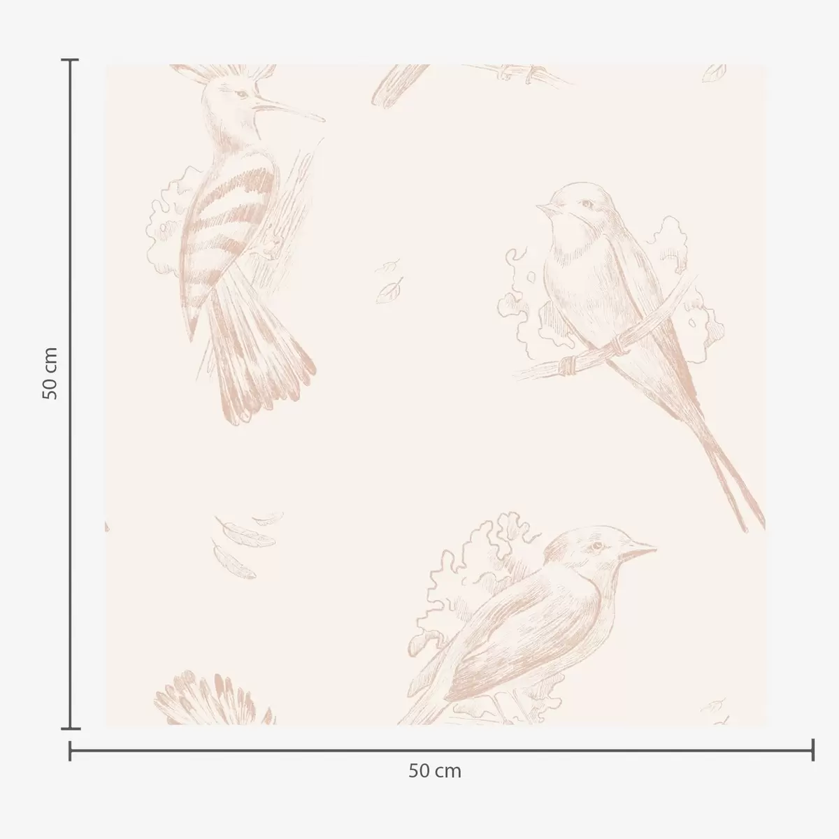 Ταπετσαρία Πουλιά σε ύφασμα: σκίτσα πουλιών σε ροδακινί-κρεμ χρώμα Nr. a00656v2