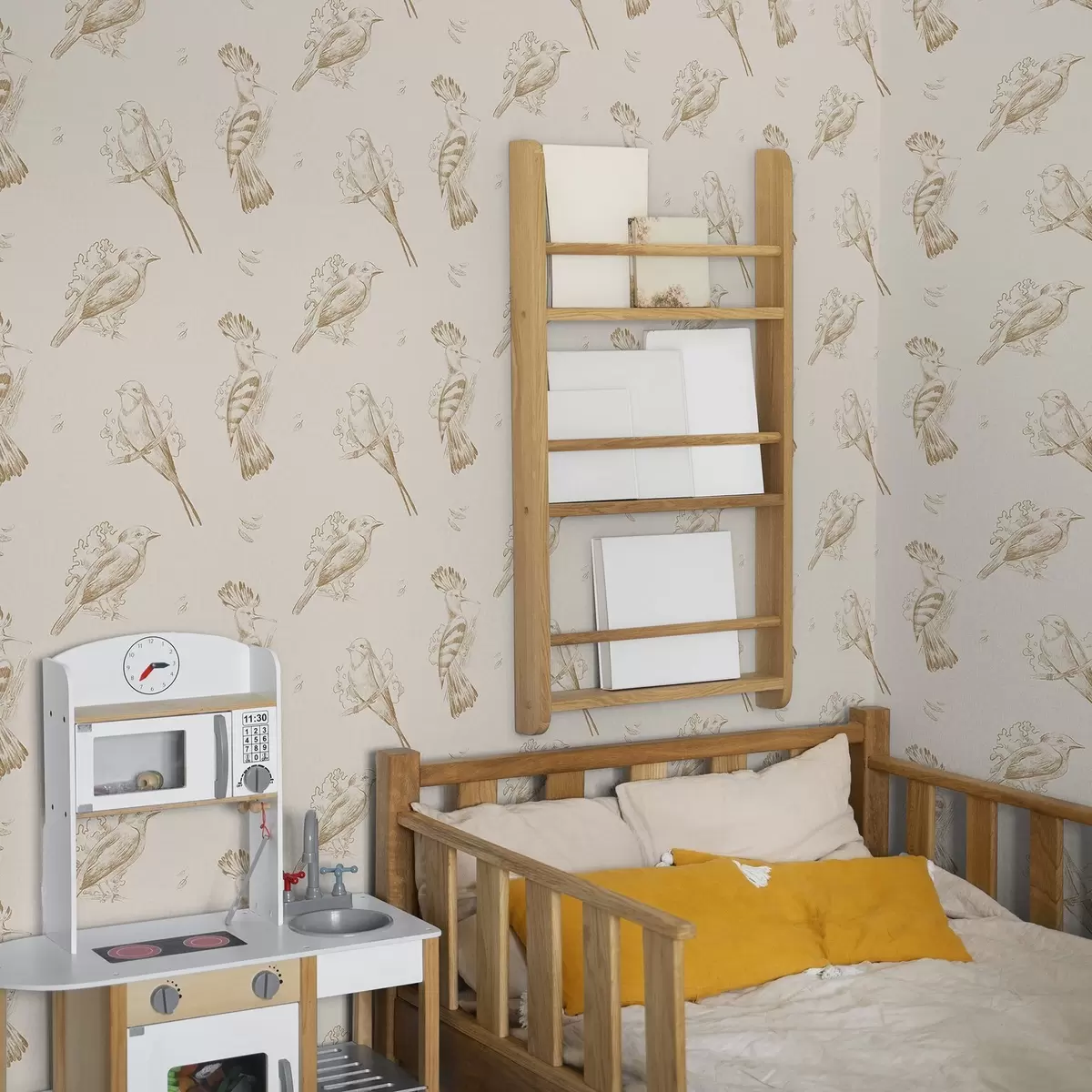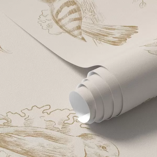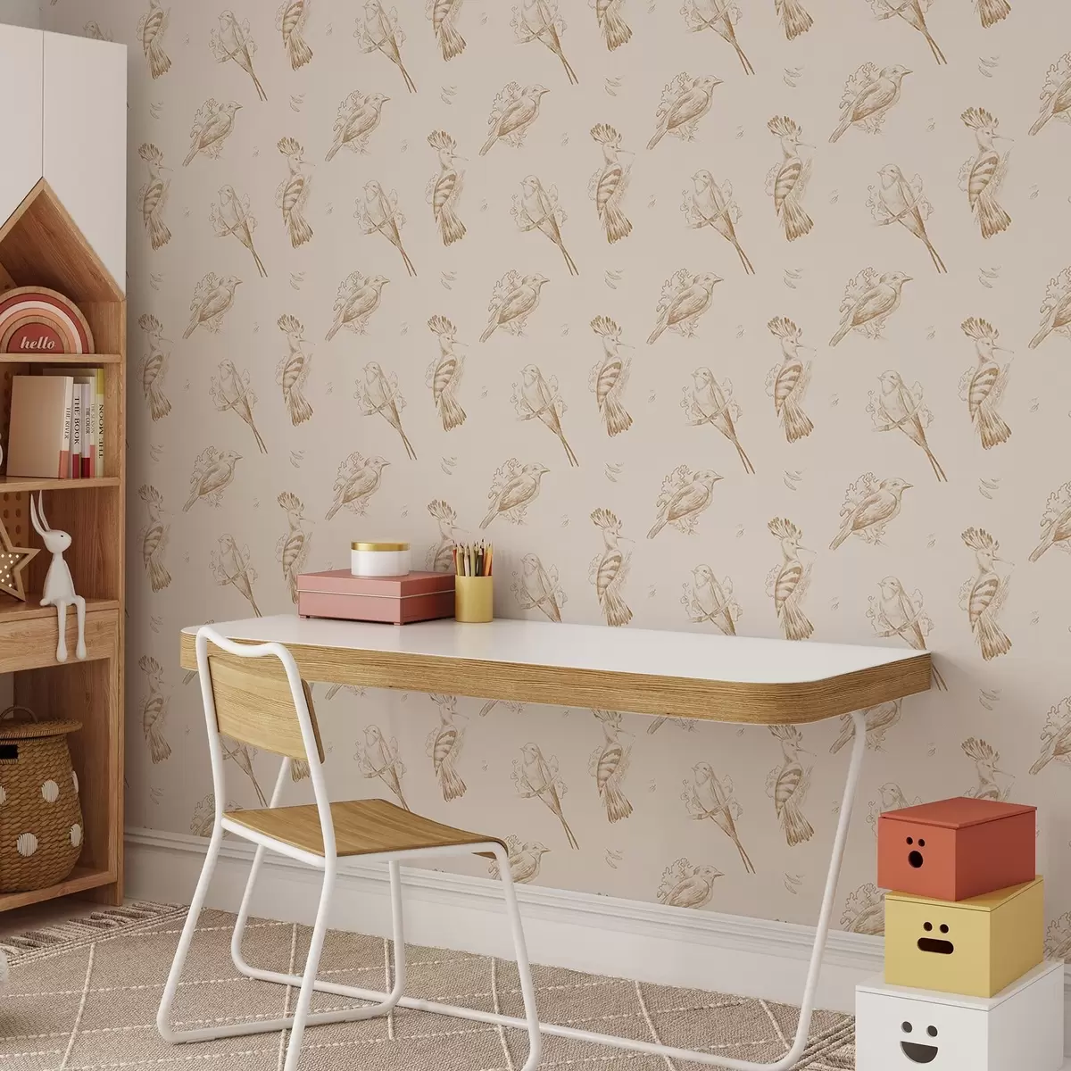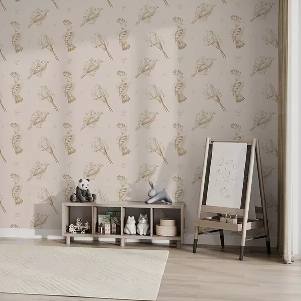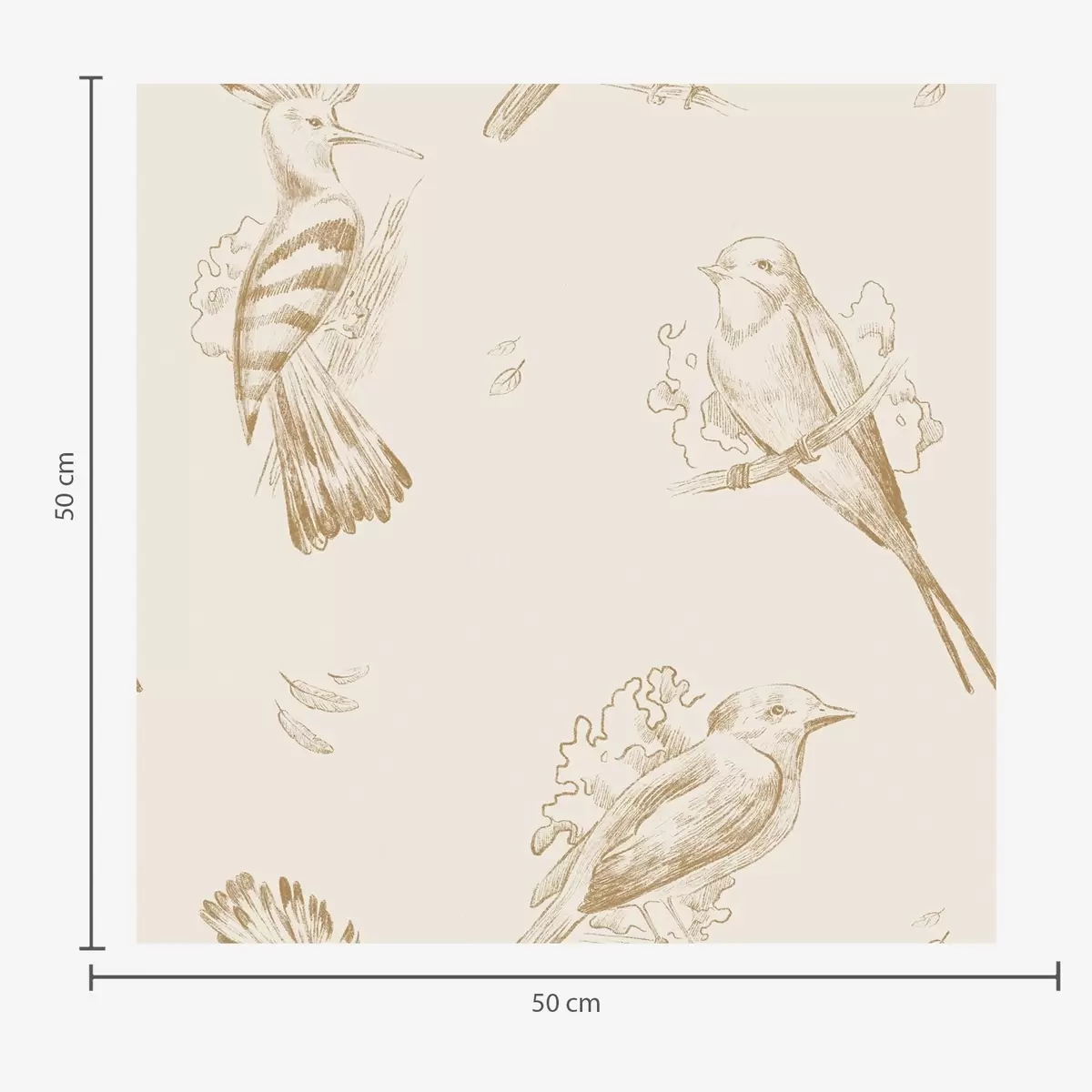 Ταπετσαρία Πουλιά σε τοίλο: σκίτσα πουλιών σε ζεστό μπεζ χρώμα Nr. a00656v3