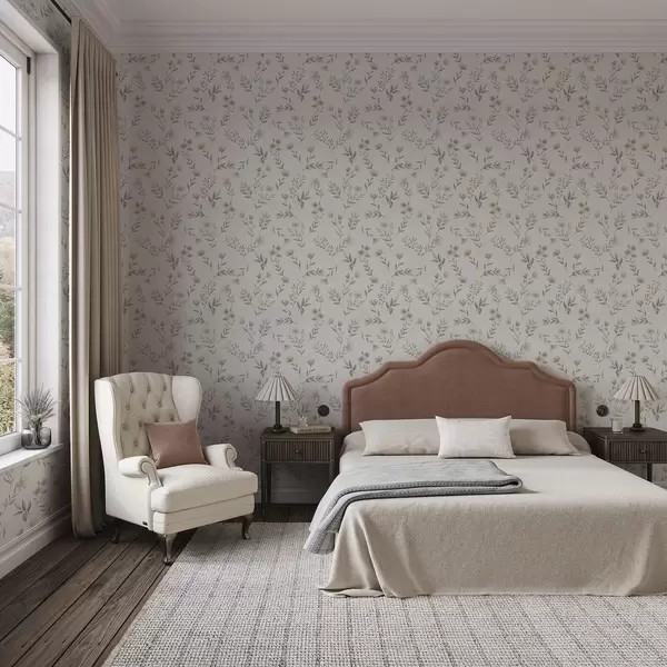 Ταπετσαρία Μικρά κλαδιά και λουλούδια σε ακουαρέλα σε ανοιχτόχρωμο φόντο Nr. a00665