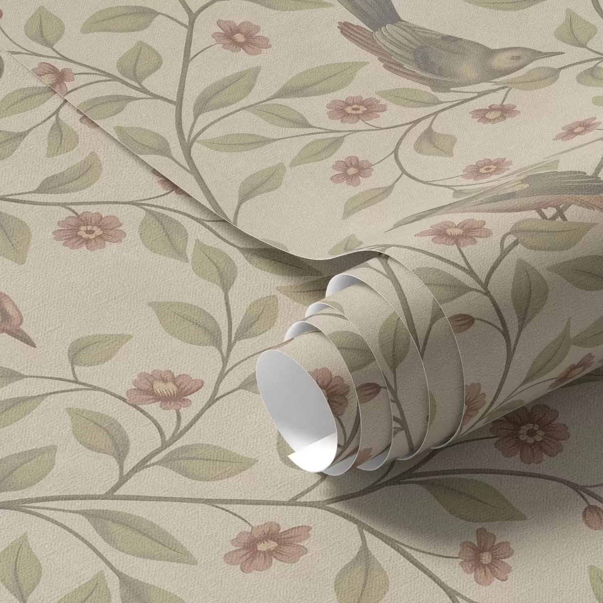 Ταπετσαρία Πουλιά σε ανθισμένα κλαδιά, ζεστό μπεζ φόντο Nr. a00670