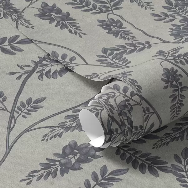Ταπετσαρία Κλαδιά με σκούρα λουλούδια σε γκρι-μπεζ φόντο Nr. a00672