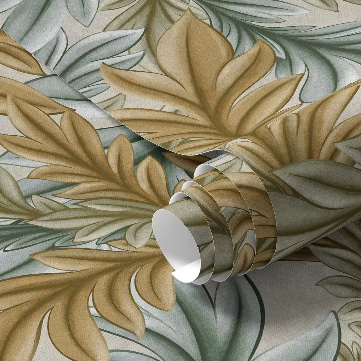 Ταπετσαρία Διακοσμητικό φύλλωμα σε ζεστή παλέτα από ώχρα και πράσινο Nr. a00673