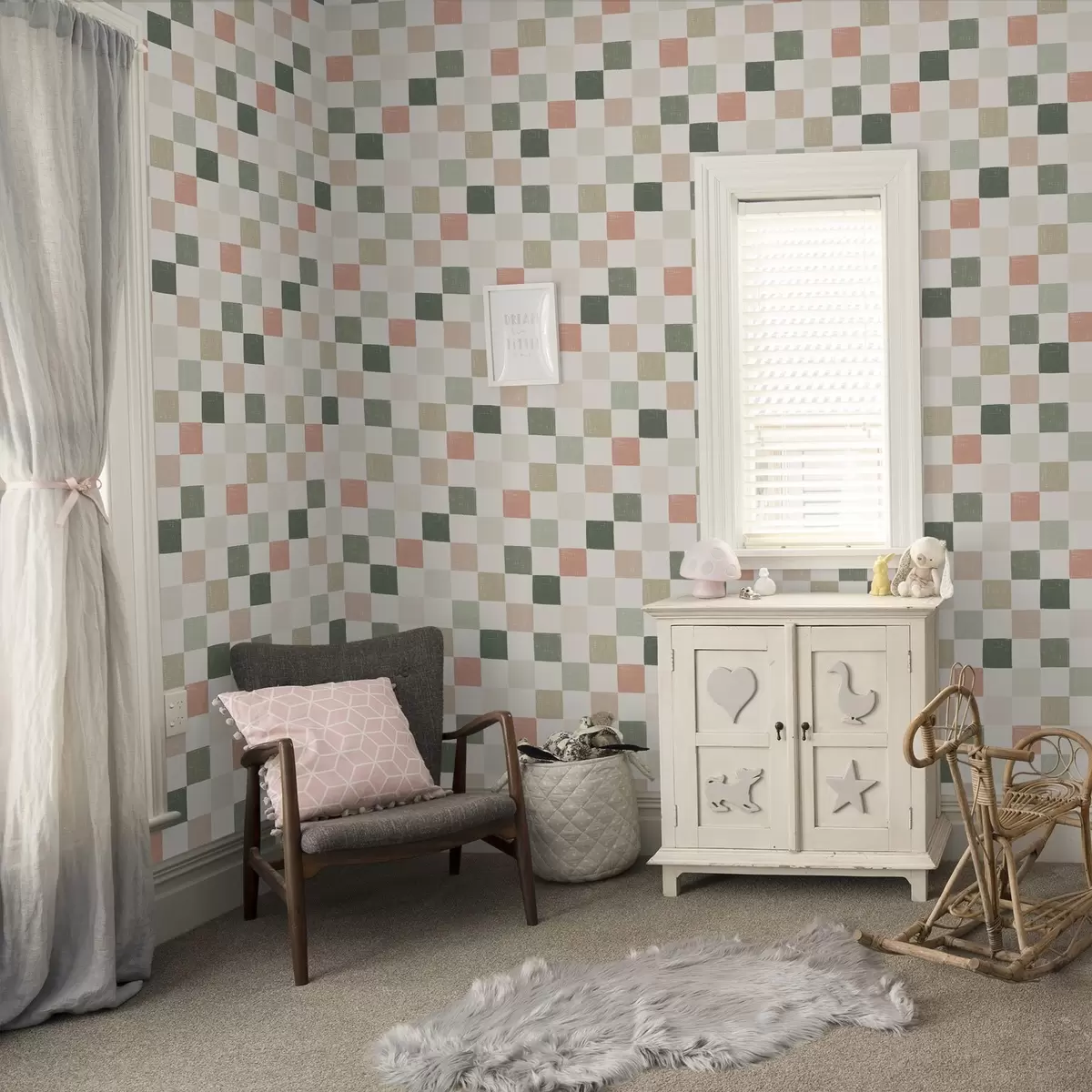 Ταπετσαρία Απαλό καρό σε παστέλ αποχρώσεις του πράσινου, του ροζ και του μπεζ Nr. a00676