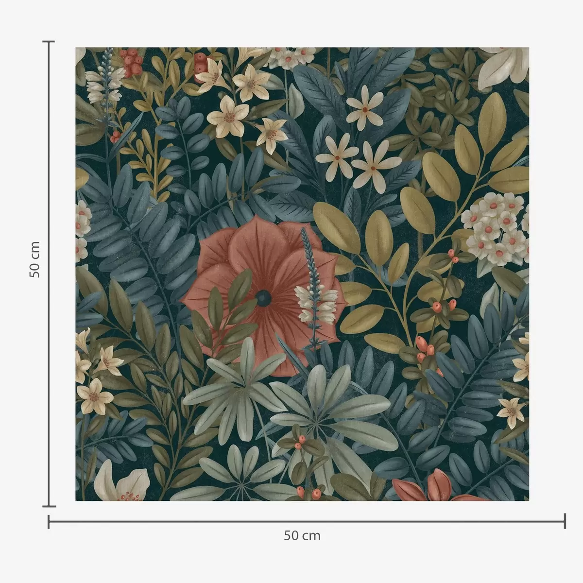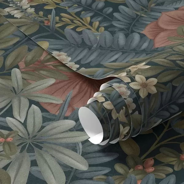 Ταπετσαρία Σκούρο φόντο με πυκνά λουλούδια και φύλλα σε ζεστούς τόνους Nr. a00678