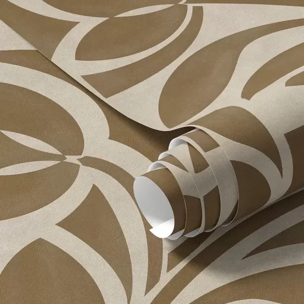 Ταπετσαρία Γεωμετρικά σχέδια φύλλων, καραμελένιο καφέ σε μπεζ φόντο Nr. a00679