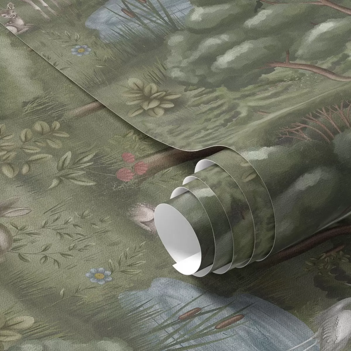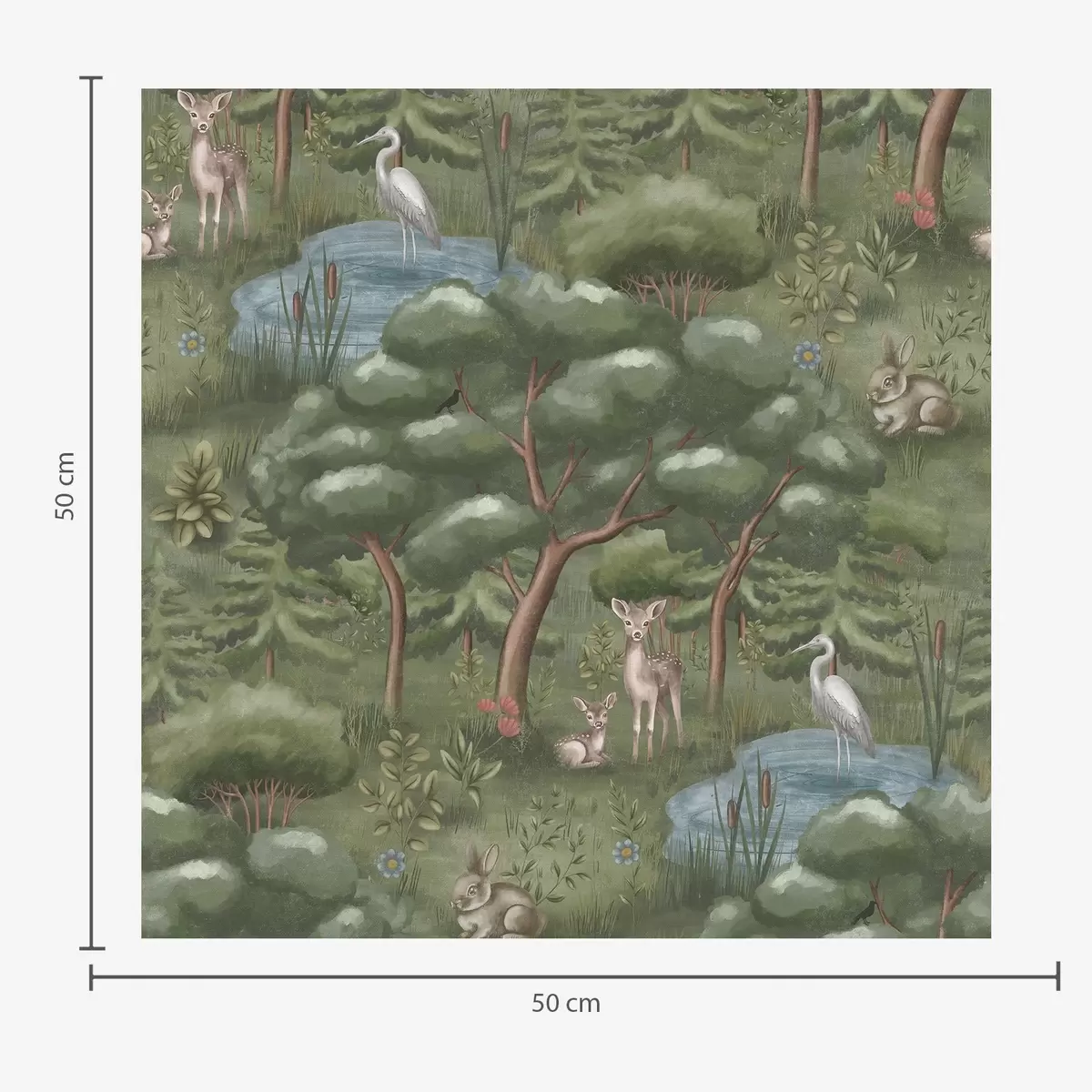 Ταπετσαρία Δασική ξέφωτο με ελαφάκια, κουνέλια και ερωδιούς Nr. a00680