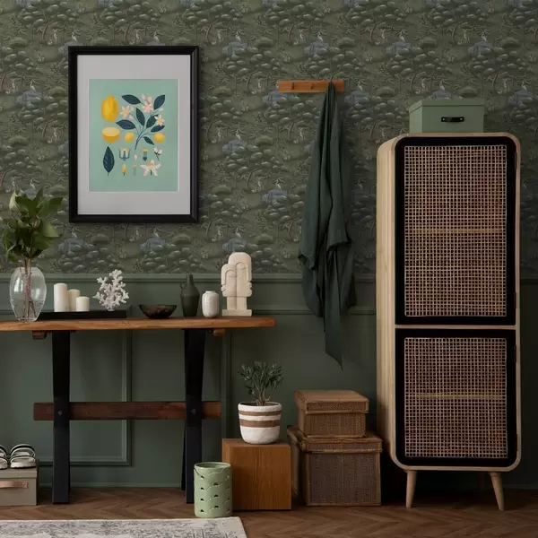 Ταπετσαρία Δασική ξέφωτο με ελαφάκια, κουνέλια και ερωδιούς Nr. a00680