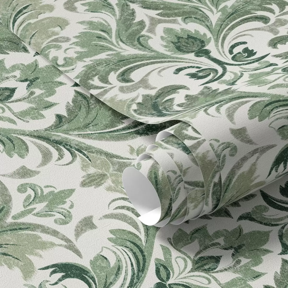 Ταπετσαρία Πράσινο δαμασκηνό με ανάγλυφη υφή σε ανοιχτόχρωμο φόντο Nr. a00692