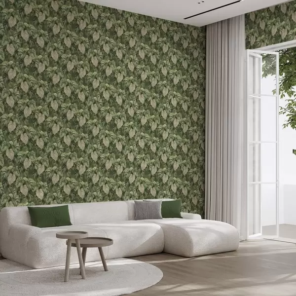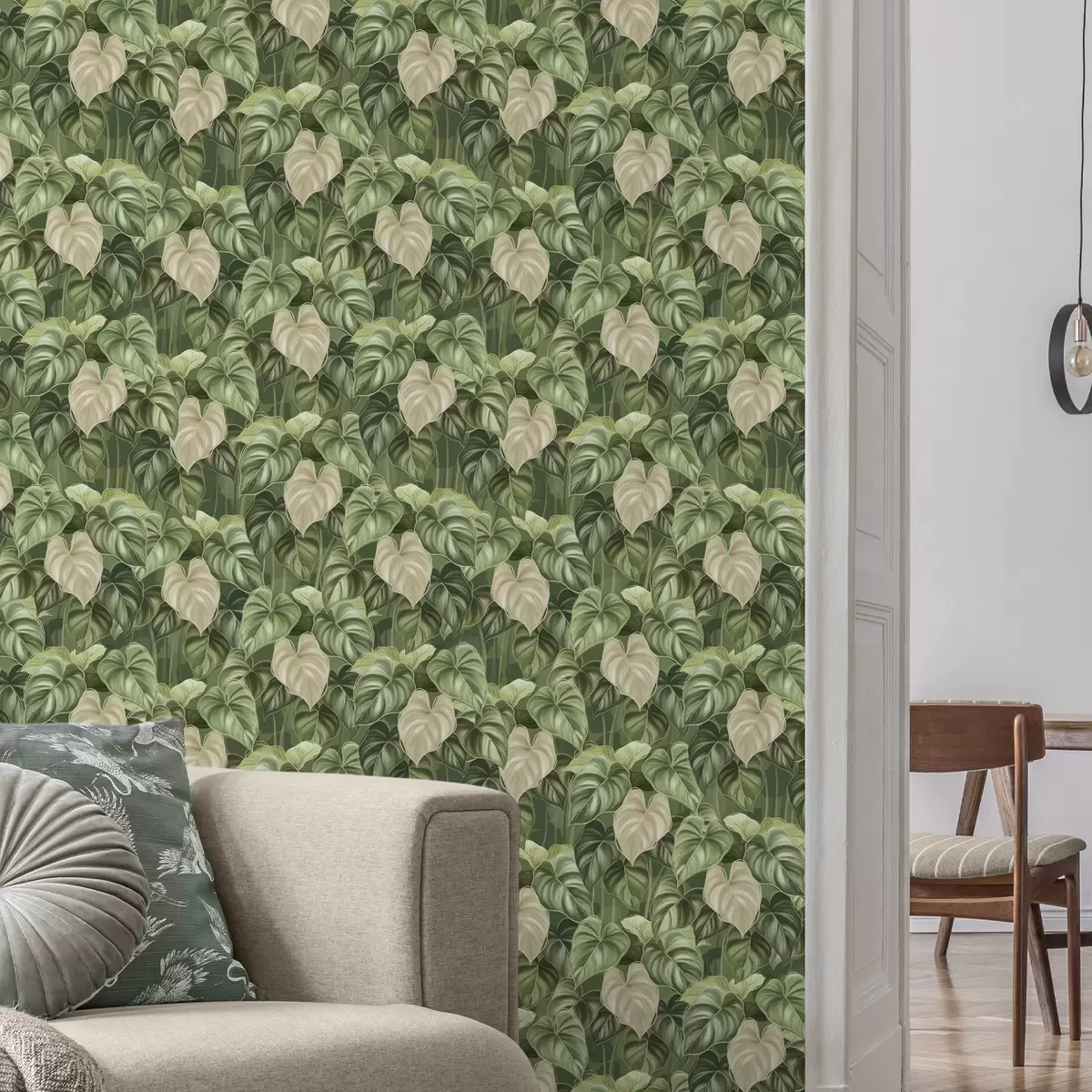 Ταπετσαρία Πλούσια φύλλα φιλόδενδρου σε αποχρώσεις του πράσινου και του ιβουάρ Nr. a00695