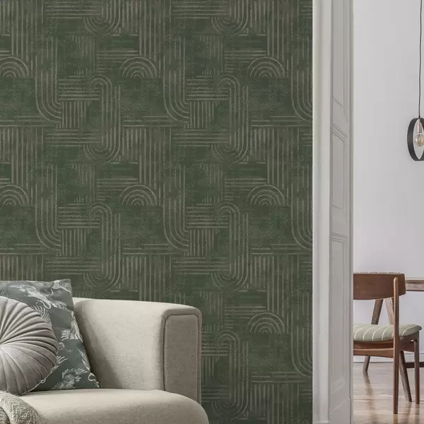 Ταπετσαρία Γεωμετρικό μοτίβο με τόξα σε πράσινη παλέτα Nr. a00697