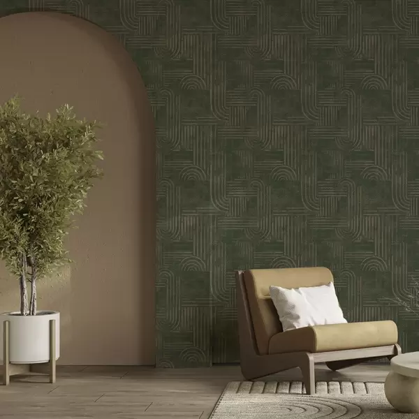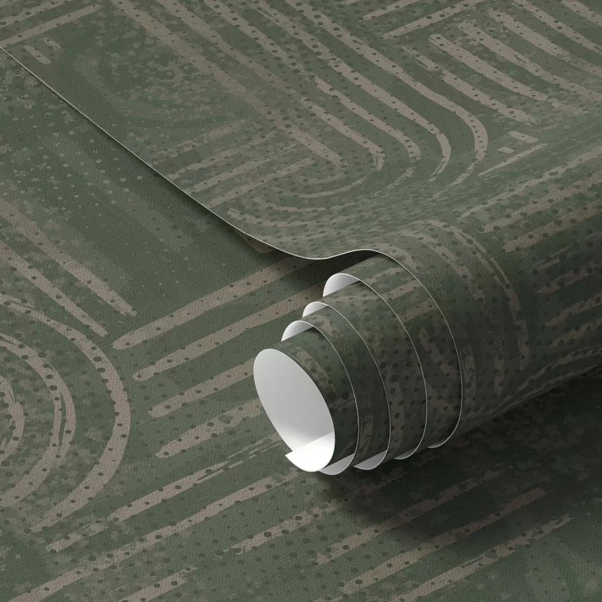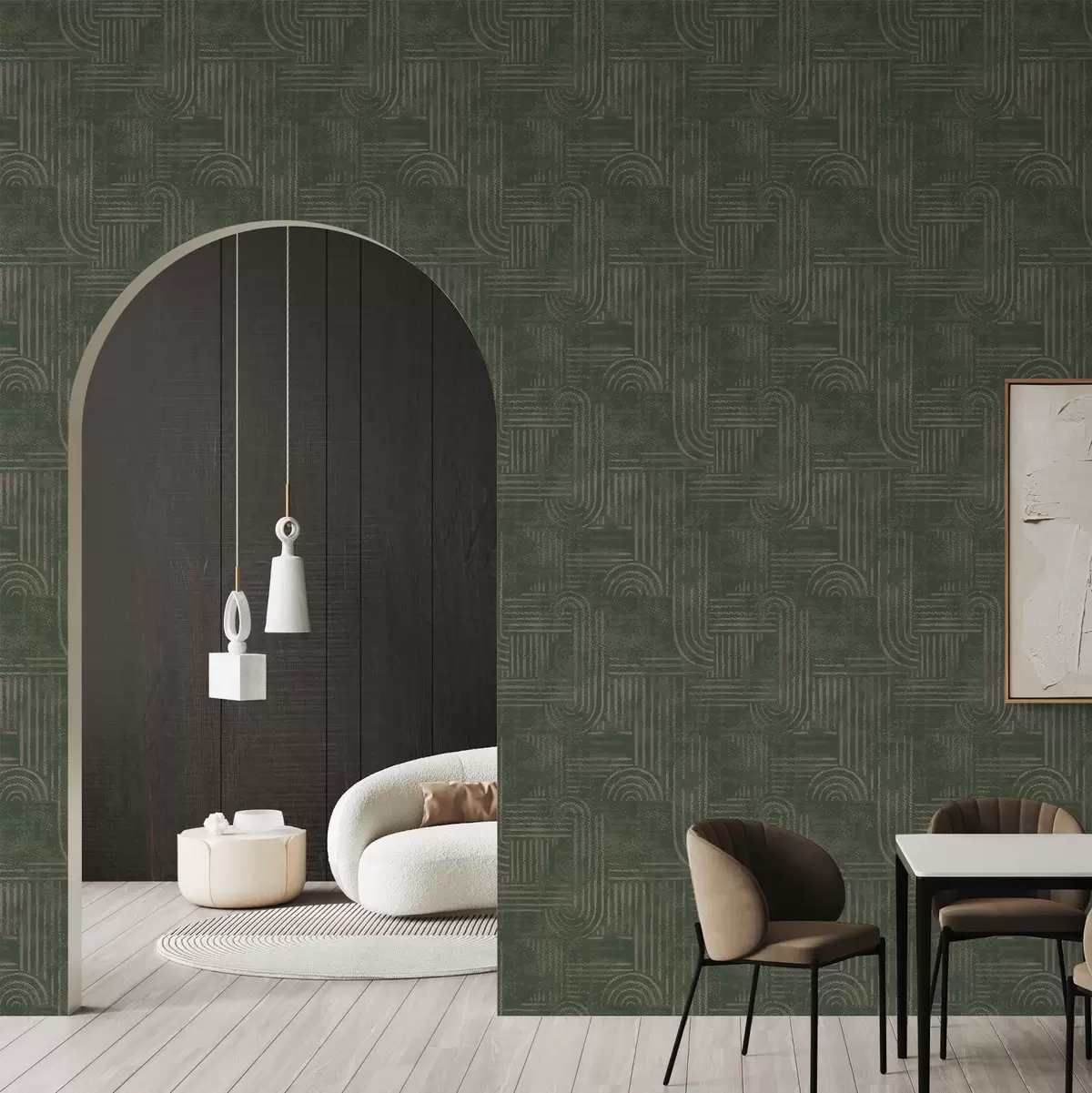 Ταπετσαρία Γεωμετρικό μοτίβο με τόξα σε πράσινη παλέτα Nr. a00697