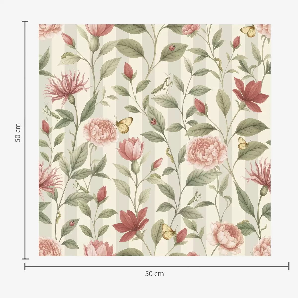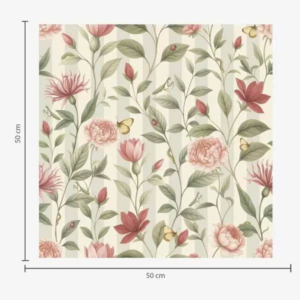 Ταπετσαρία Λουλουδάτα στελέχη με πεταλούδες σε ανοιχτόχρωμο φόντο Nr. a00698