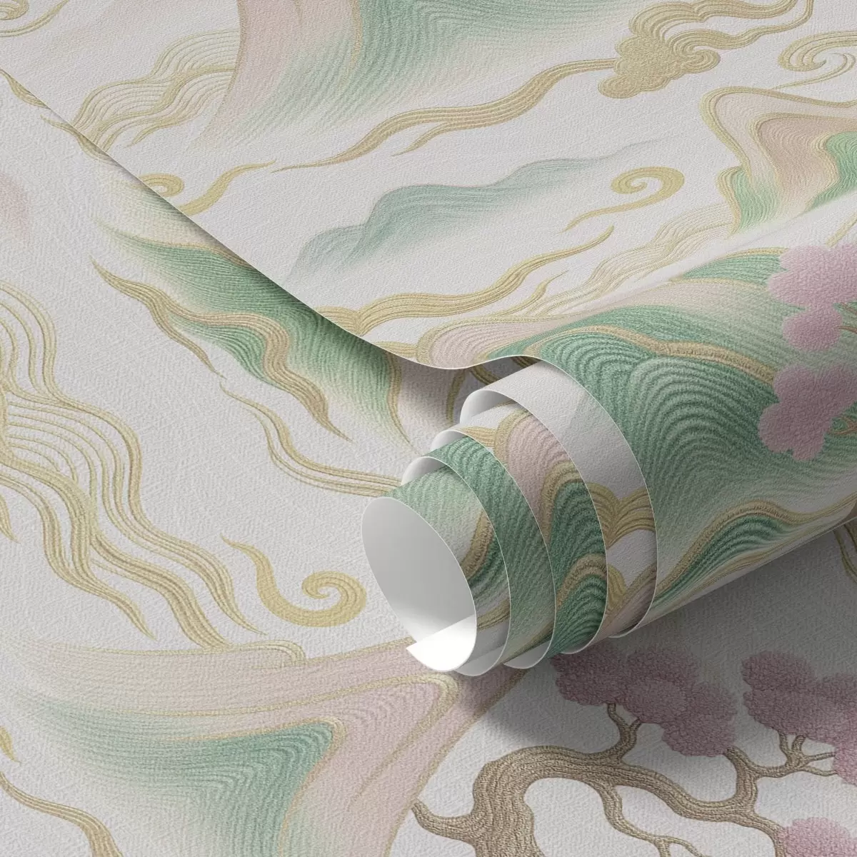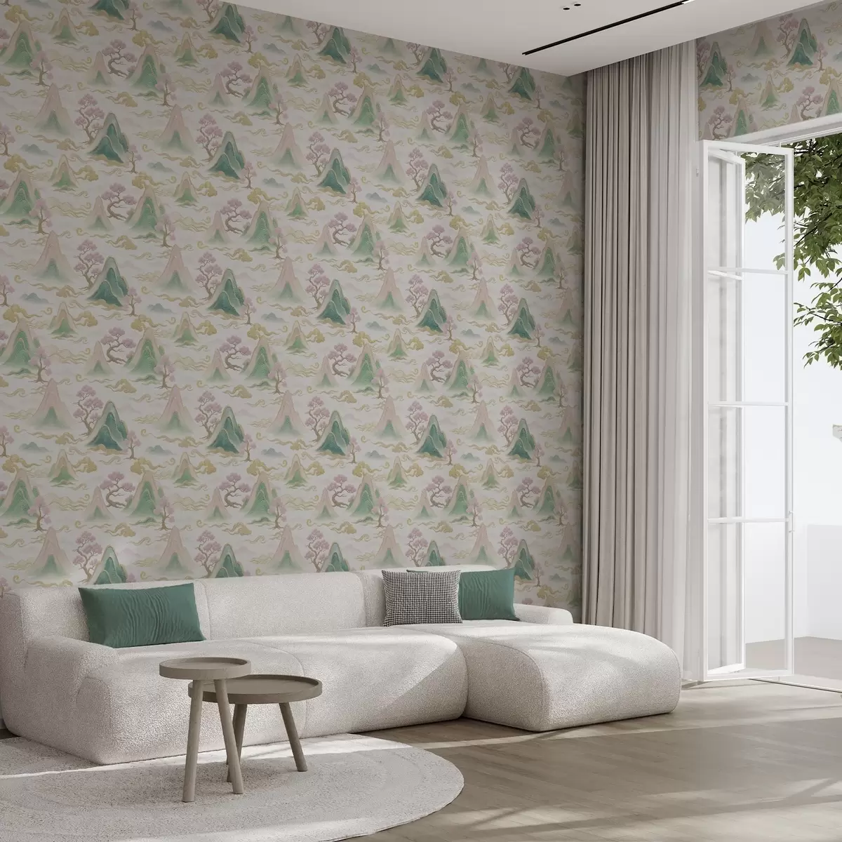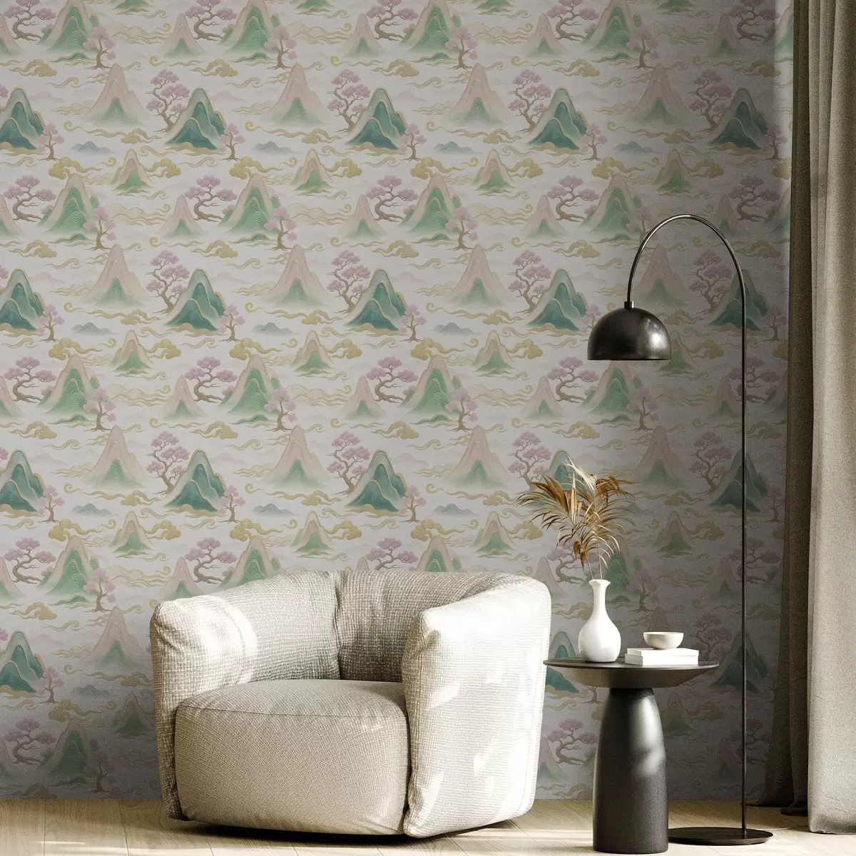 Ταπετσαρία Βουνά, σύννεφα και πεύκα σε ανατολίτικο διακοσμητικό στυλ Nr. a00703