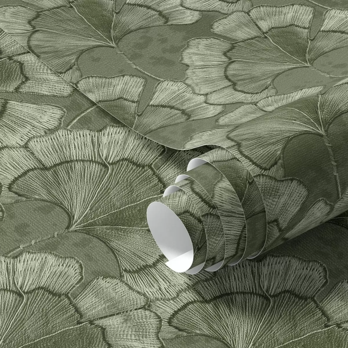 Ταπετσαρία Γραφικό μοτίβο με γκίνγκο σε δροσερή πράσινη παλέτα Nr. a00709