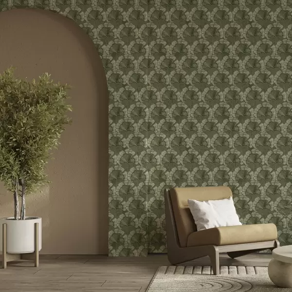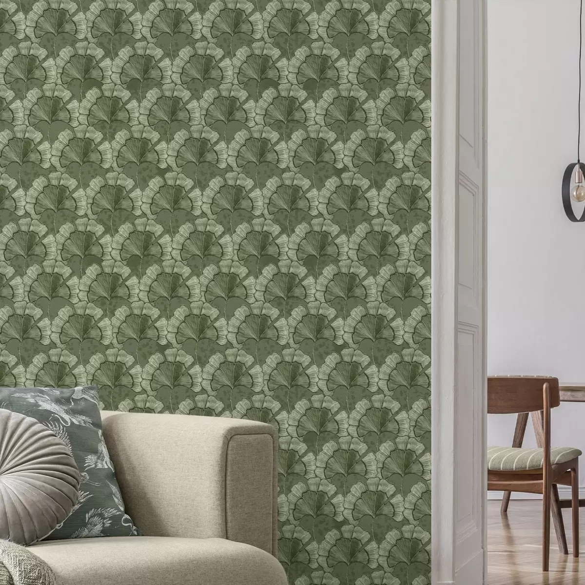 Ταπετσαρία Γραφικό μοτίβο με γκίνγκο σε δροσερή πράσινη παλέτα Nr. a00709