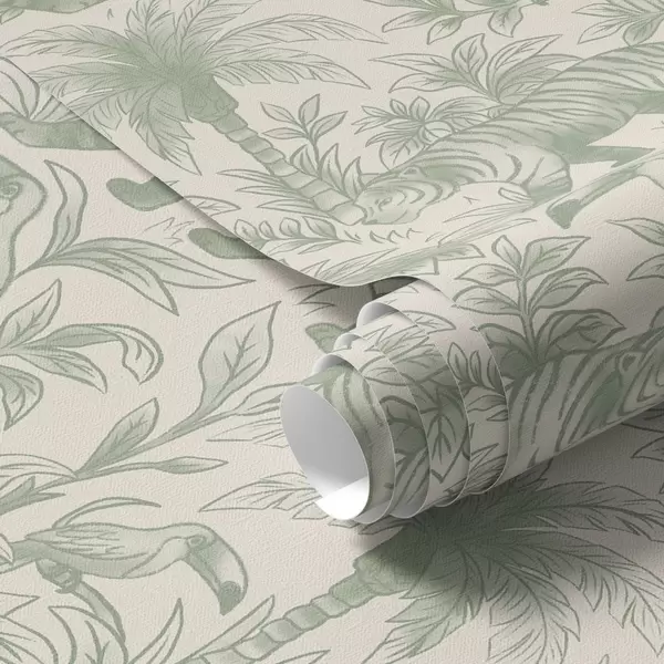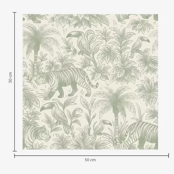 Ταπετσαρία Τίγρεις και τροπικά πουλιά ανάμεσα σε φοίνικες σε ανοιχτόχρωμο φόντο Nr. a00711