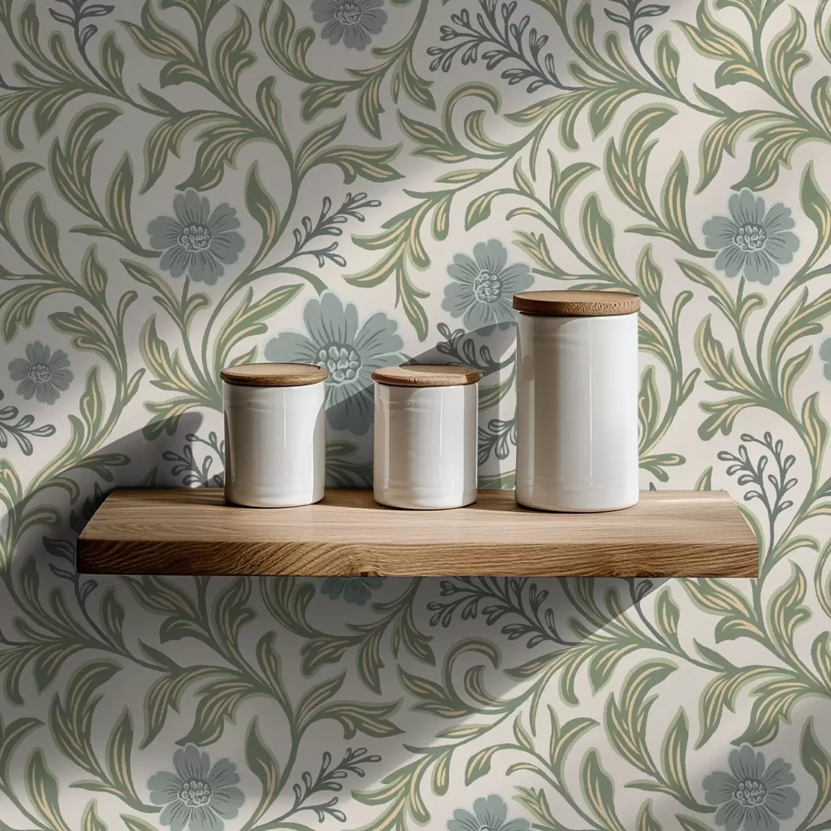 Ταπετσαρία Σαλέ-γκρι floral διακοσμητικό σε ανοιχτόχρωμο φόντο Nr. a00712