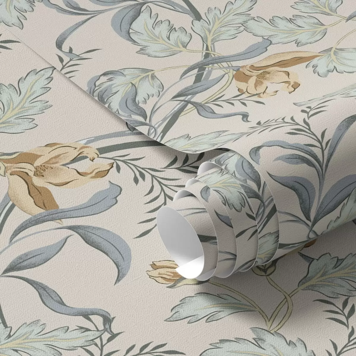 Ταπετσαρία Vintage λουλούδια με μπλε φύλλωμα σε κρεμ φόντο Nr. a00717