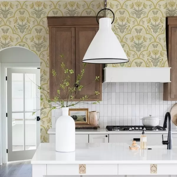 Ταπετσαρία Διακοσμητικό με τουλίπα, πουλιά και πεταλούδες, ώχρα Nr. a00722