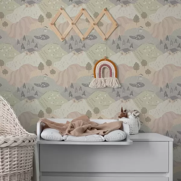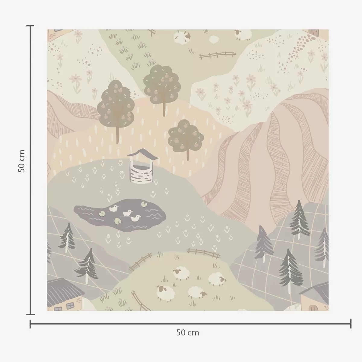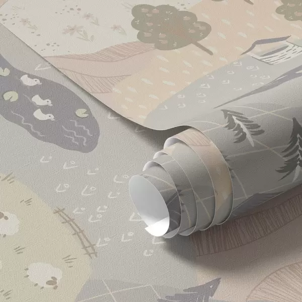 Ταπετσαρία Παραμυθένια ύπαιθρος με δέντρα, χήνες και πρόβατα Nr. a00728