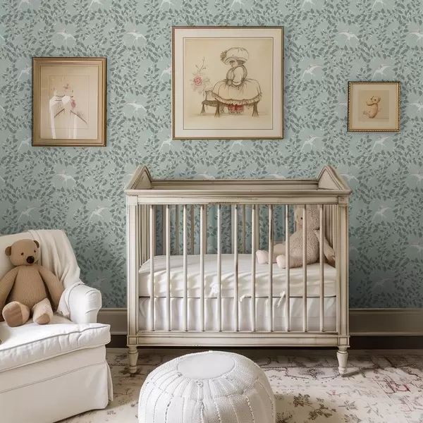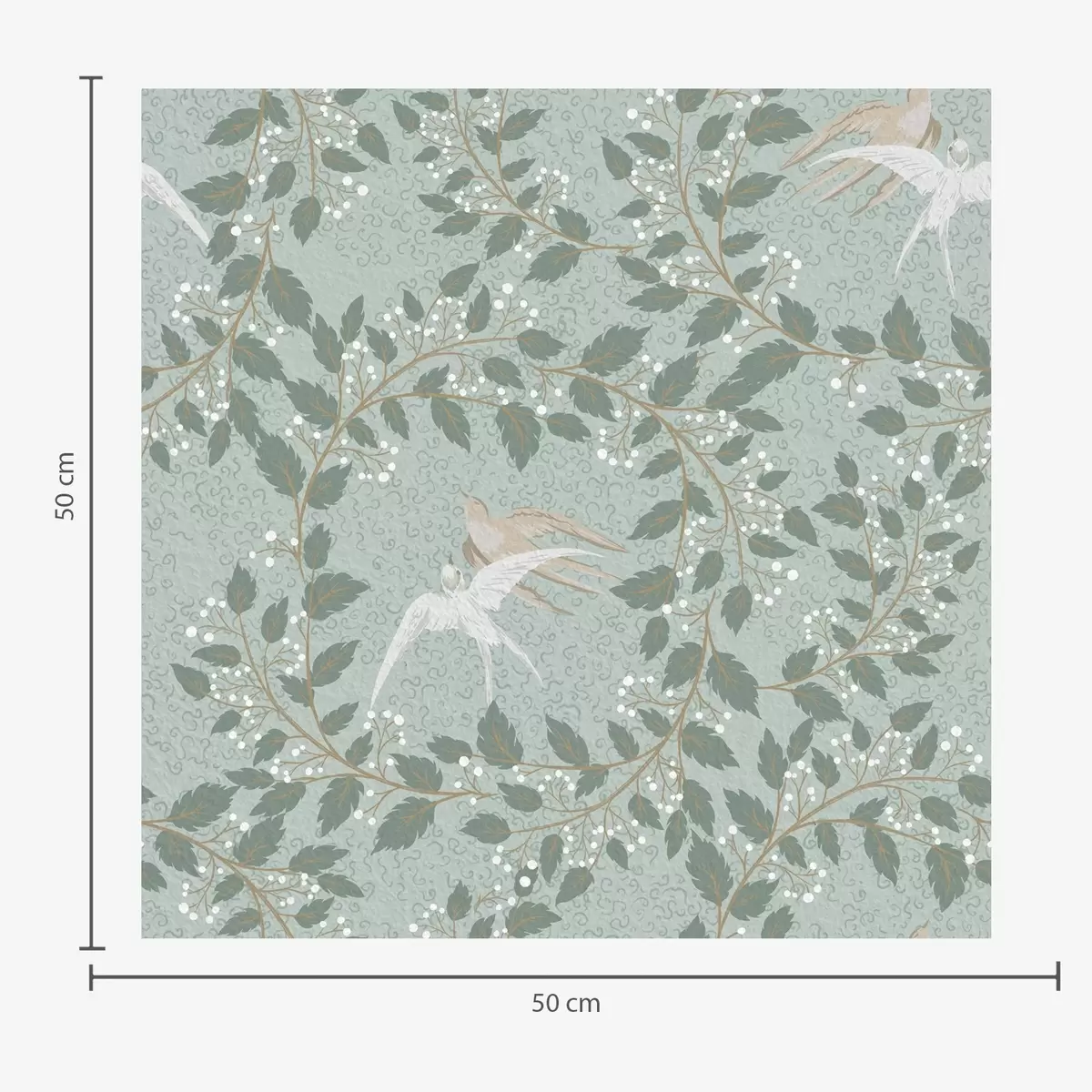 Ταπετσαρία Κλαδιά με λευκά μούρα και πουλιά σε πράσινο φόντο Nr. a00731