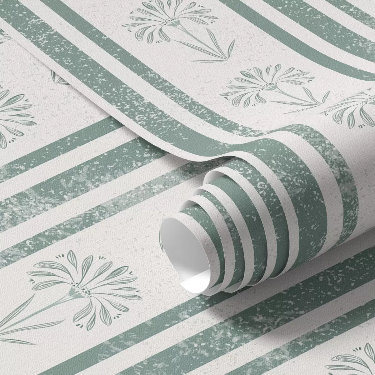 Ταπετσαρία Μοτίβο κορδέλας με λουλούδια σε αποχρώσεις του πράσινου Nr. a00732