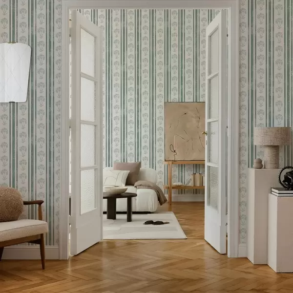 Ταπετσαρία Μοτίβο κορδέλας με λουλούδια σε αποχρώσεις του πράσινου Nr. a00732