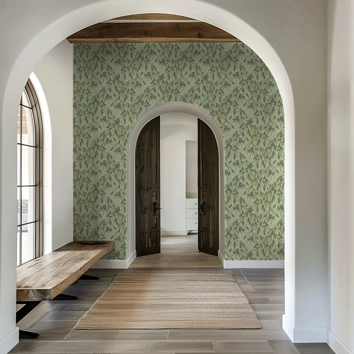 Ταπετσαρία Κλαδιά με τσαμπιά μούρων σε πράσινο φόντο Nr. a00734