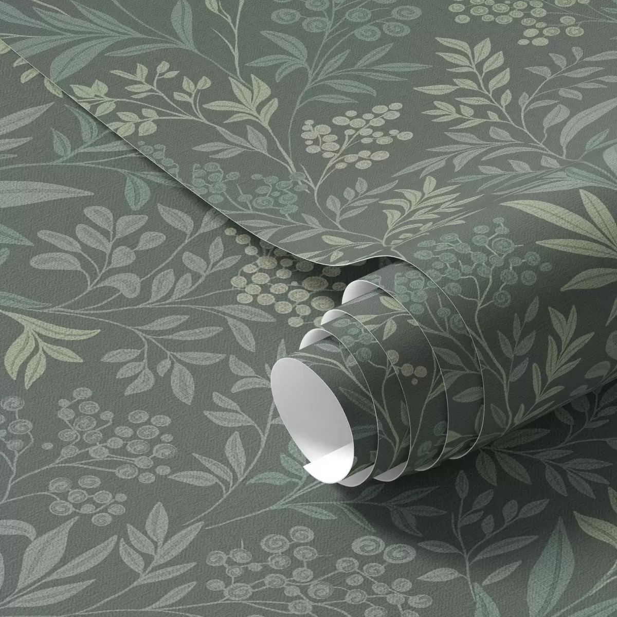 Ταπετσαρία Σμαραγδένια χόρτα και μούρα, λεπτό βοτανικό μοτίβο Nr. a00740