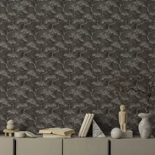 Ταπετσαρία Σιλουέτες πεύκων σε σκούρο φόντο, ομιχλώδης υφή Nr. a00742