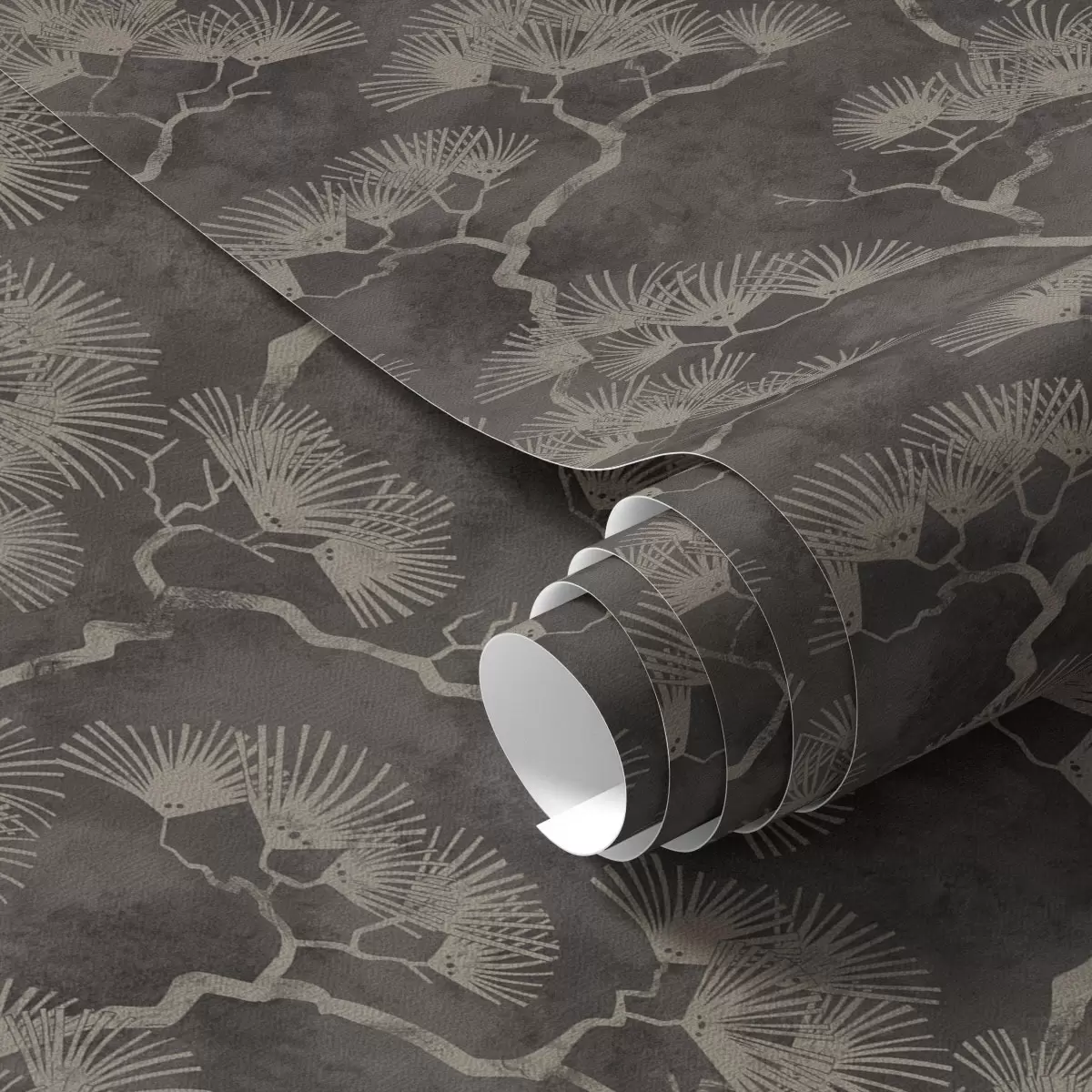 Ταπετσαρία Σιλουέτες πεύκων σε σκούρο φόντο, ομιχλώδης υφή Nr. a00742