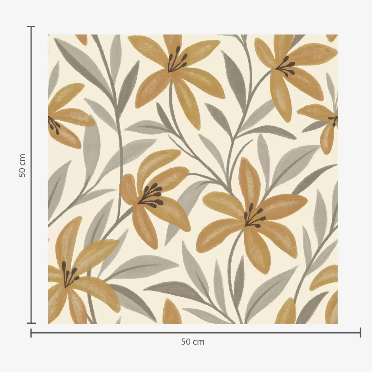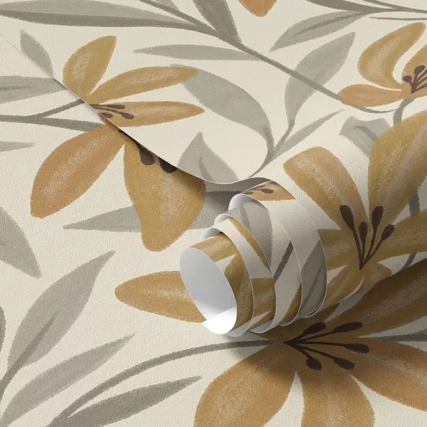 Ταπετσαρία Κίτρινα κρίνα και γκριζοπράσινα φύλλα σε ανοιχτόχρωμο φόντο Nr. a00757