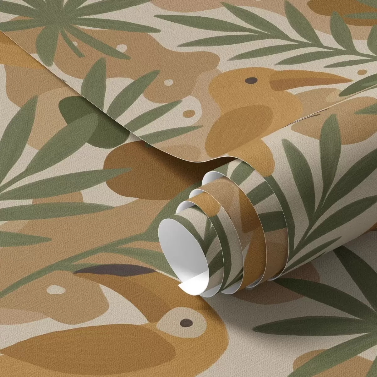 Ταπετσαρία Στυλιζαρισμένοι τουκάνοι ανάμεσα σε φύλλα φοίνικα Nr. a00762