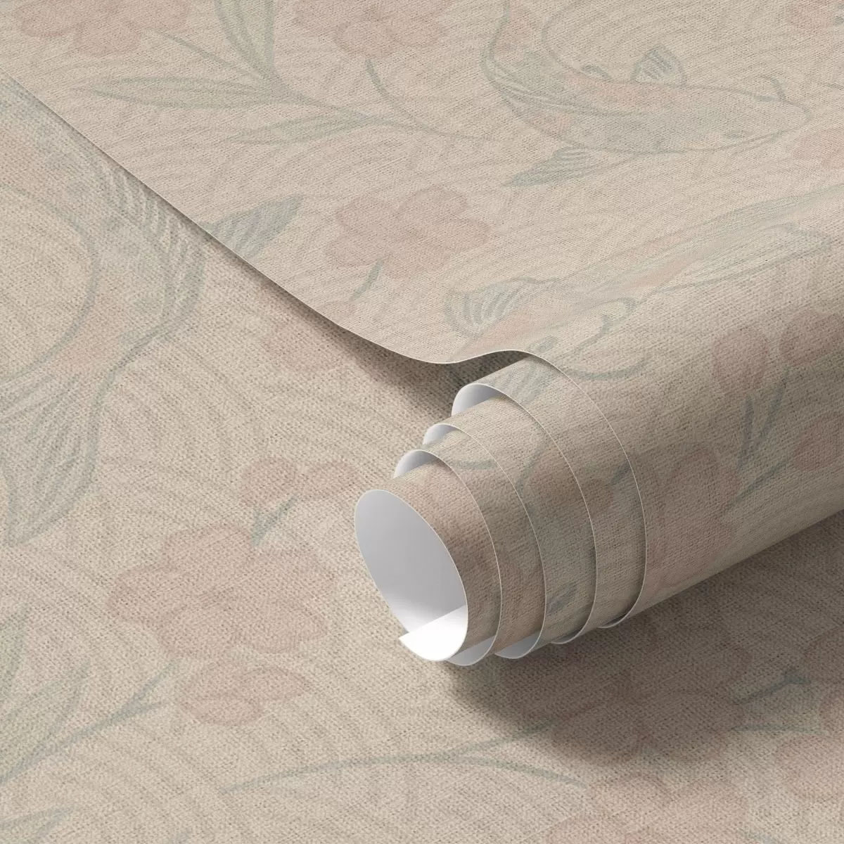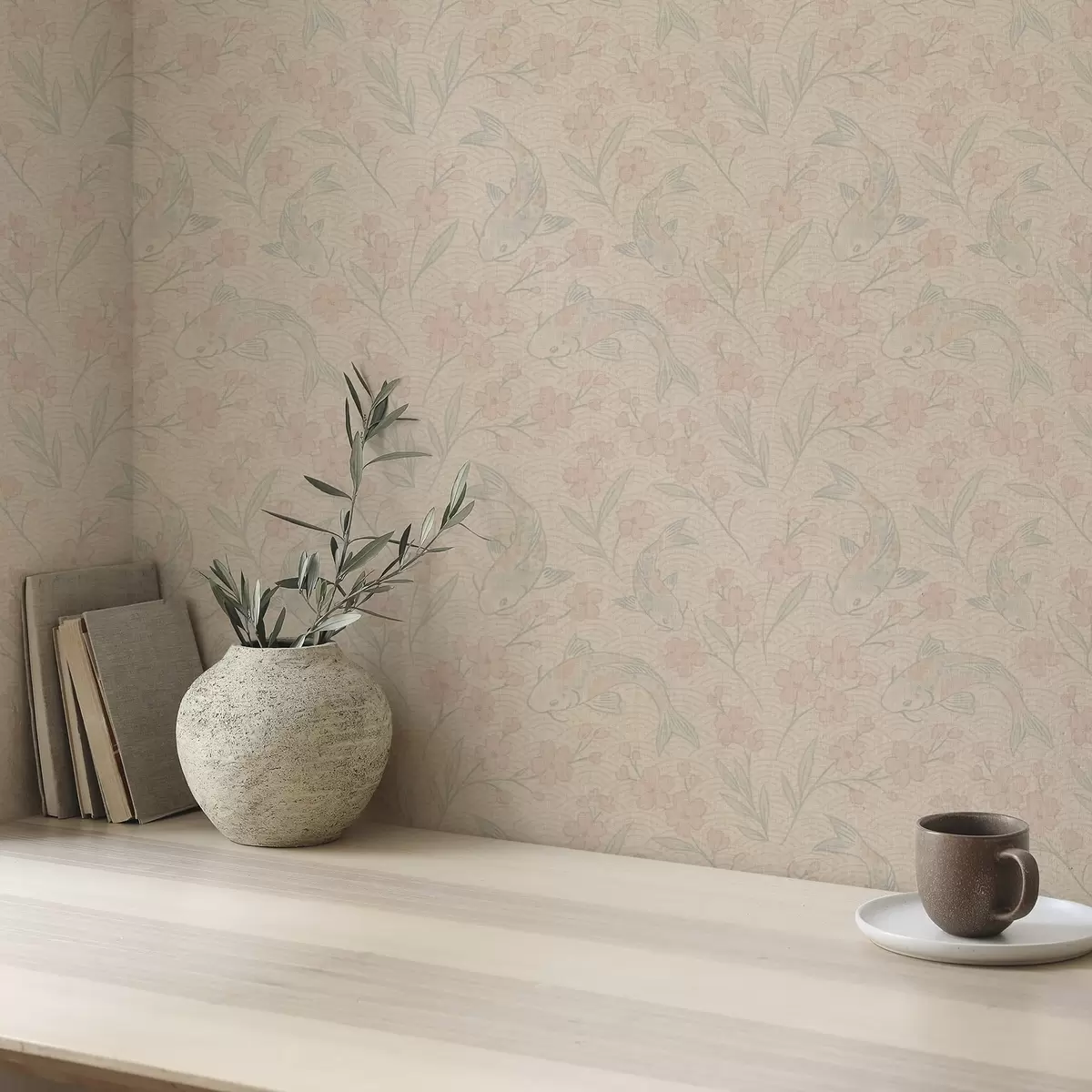 Ταπετσαρία Κυπρίνοι ανάμεσα σε λουλούδια σε απαλές αποχρώσεις του μπεζ-ροζ Nr. a00766