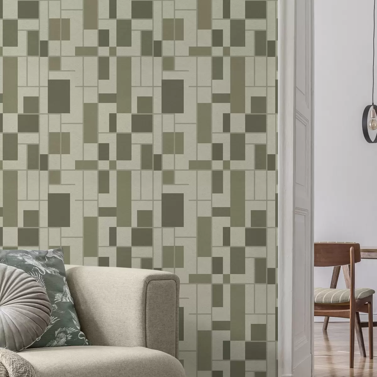 Ταπετσαρία Γεωμετρικό μοτίβο σε αποχρώσεις του πράσινου Nr. a00769