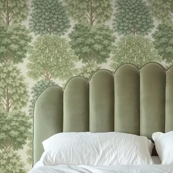 Ταπετσαρία Δέντρο κήπος σε απαλά πράσινα χρώματα σε ανοιχτόχρωμο φόντο Nr. a00775