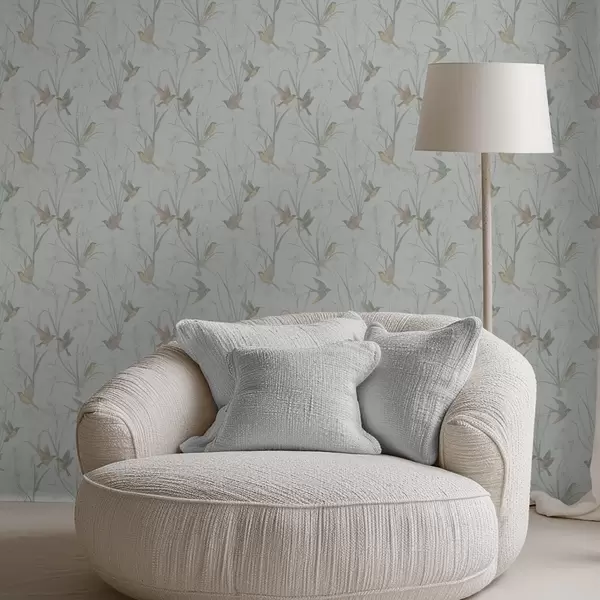 Ταπετσαρία Πουλιά ανάμεσα στα χόρτα του λιβαδιού σε ανοιχτό γκρι φόντο Nr. a00776v1