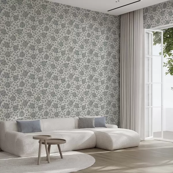 Ταπετσαρία Θαμνώδη άνθη και φύλλα σε γκρι-μπλε παλέτα Nr. a00778