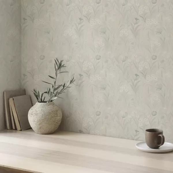 Ταπετσαρία Απαλό λιβάδι με τουλίπες και μαργαρίτες, παστέλ φασκόμηλο Nr. a00779