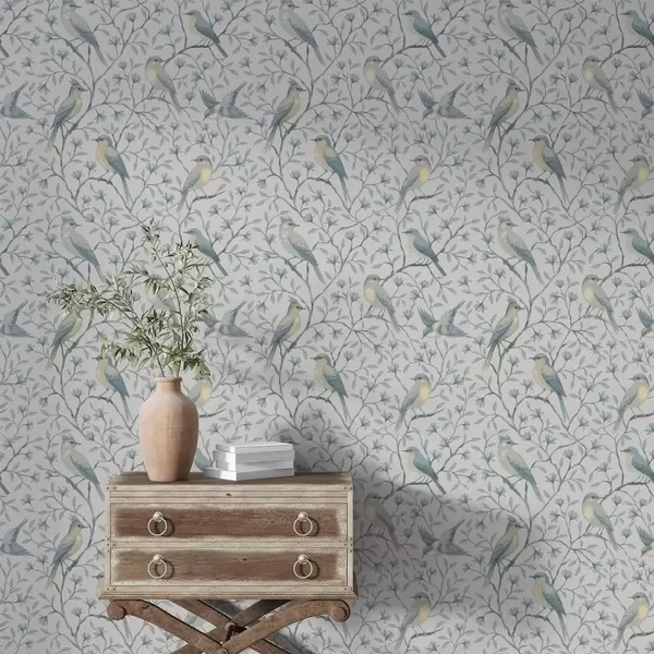 Ταπετσαρία Πουλιά σε κλαδιά, γκρι-μπλε χρώμα Nr. a00782