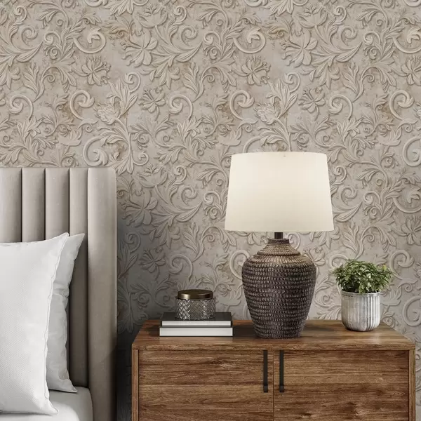 Ταπετσαρία Πέτρινο ανάγλυφο με φυτικά μοτίβα, vintage μπεζ Nr. a00784