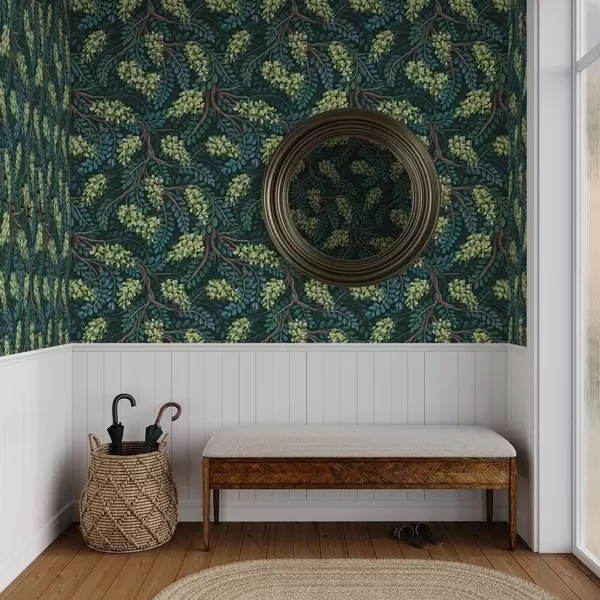 Ταπετσαρία Κλαδιά με πρασινωπές ταξιανθίες σε σκούρο φόντο Nr. a00786