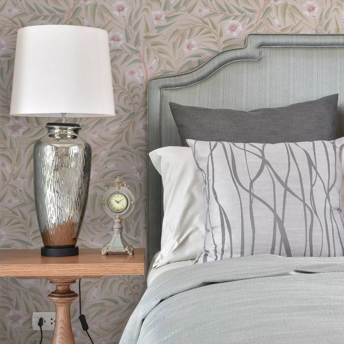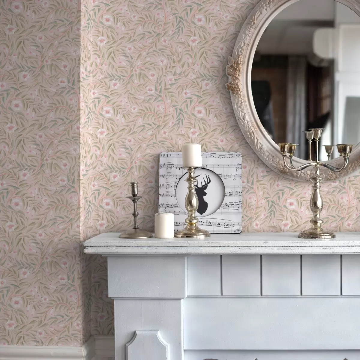 Ταπετσαρία Λεπτά ροζ λουλούδια και απαλά φύλλα σε παστέλ φόντο Nr. a00788