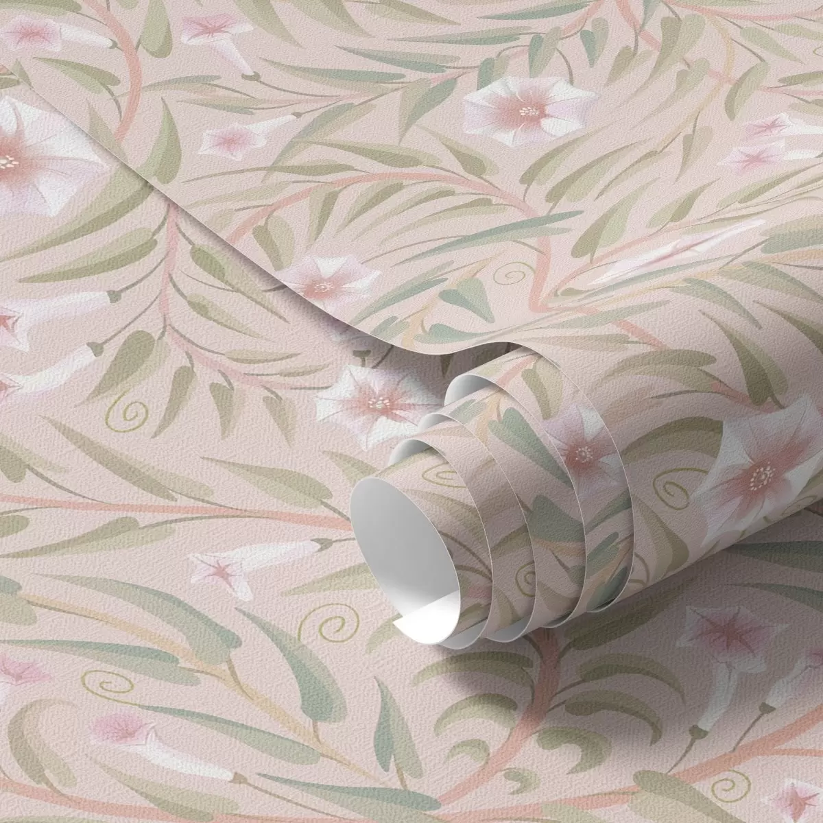 Ταπετσαρία Λεπτά ροζ λουλούδια και απαλά φύλλα σε παστέλ φόντο Nr. a00788