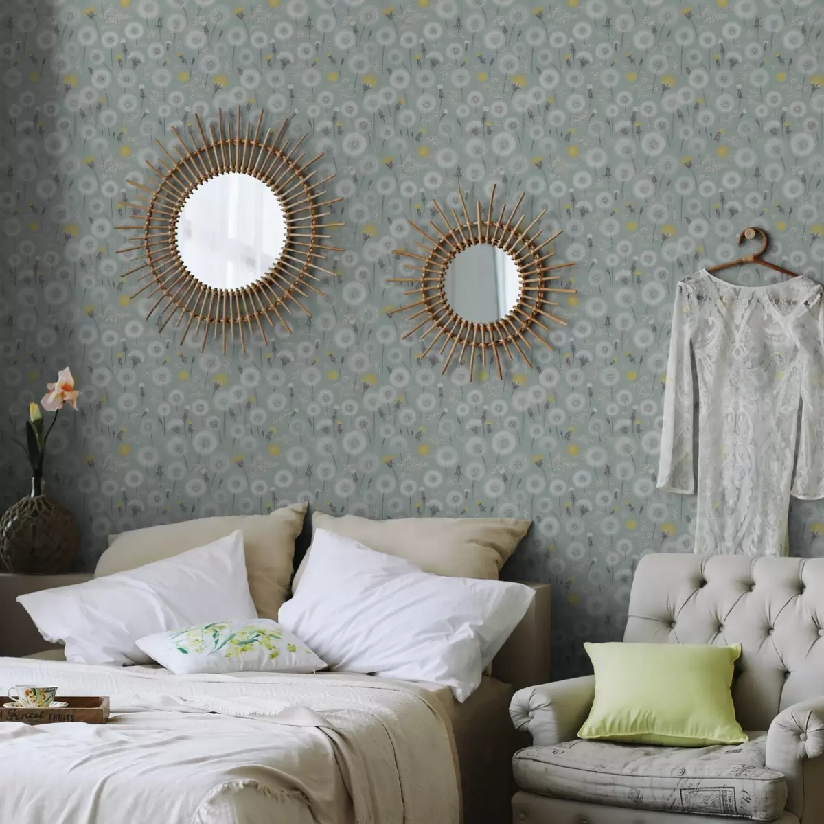 Ταπετσαρία Αφράτα πικραλίδα και σπόροι σε φόντο μέντας Nr. a00790